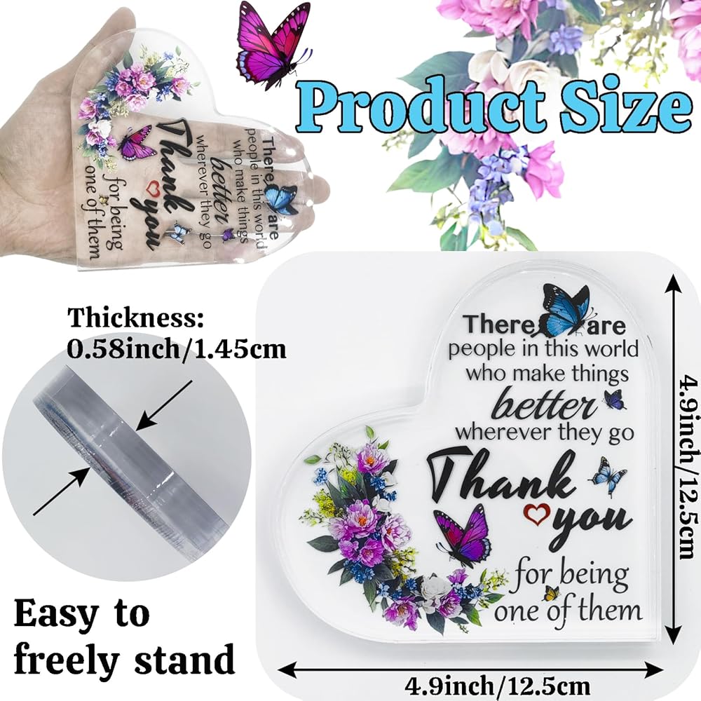 ❤مادة متينة: هدية شكرًا لك مصنوعة من مادة أكريليك شفافة عالية الجودة، خفيفة الوزن وموثوقة، السطح أملس ومريح عند لمسه. مقاس الهدية تقريبًا 4.9x4.9x0.58 بوصة/12.5x12.5x1.45 سم، وهو مناسب لوضعه على الطاولة أو المكتب دون أن يشغل مساحة كبيرة، وسهل التخزين والحمل.