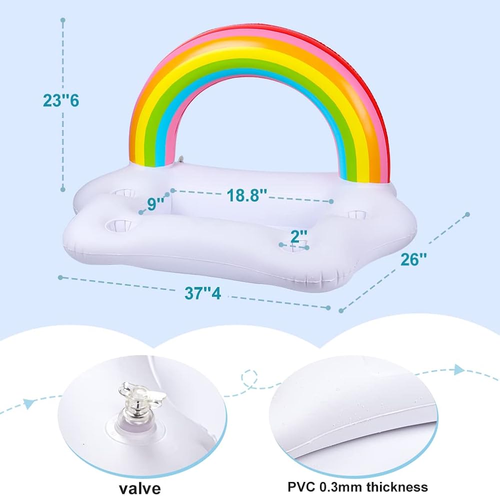 🌈(استمتع بالطعام حتى في الماء) ساخن جدًا بحيث لا يمكن الخروج من الماء للحصول على شيء للأكل، الآن مع حامل المشروبات العائم القابل للنفخ، يمكنك الحصول على مشروب أو فاكهة في متناول اليد. تم تصميم حامل المشروبات على شكل سحابة قوس قزح هذا خصيصًا لفصل الصيف البارد. . 4 حاملات أكواب مدمجة لحمل مشروب البيرة، وأيضًا بار لوضع المشروبات وسلطة الفاكهة وما إلى ذلك. لا تفوت الملحقات الأساسية لحفلة حمام السباحة، عوامات قوس قزح FirstE.