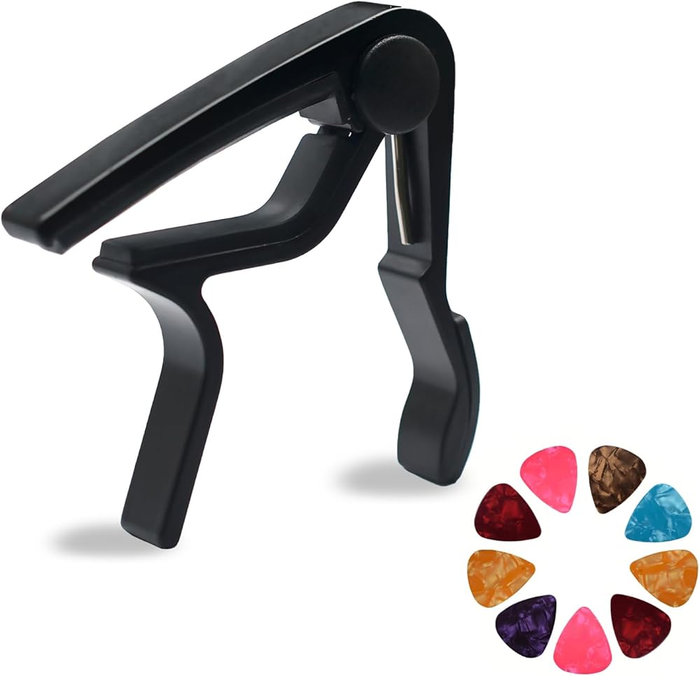 غيتار كابو من سابو، ملحقات غيتار للجيتار الصوتي، غيتار كلاسيكي وجيتار كهربائي، يوكوليل، ماندلين، بانجو (مع حامل بيك و 1 إصبع أخطاء + 3 اختيارات سماكة مختلفة) in Kuwait