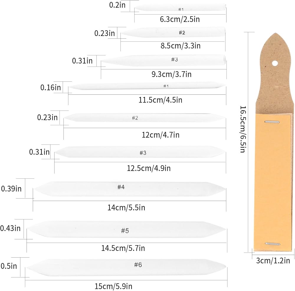 • Package Includes: This package includes 6 pcs blending stumps (#1, #2, #3, #4, #5, #6) , 9 pcs tortillions(#1, #2, #3, 3 pcs for each size) , and 1 sandpaper pencil pointer. Durable, bend easily, small, exquisite, convenient of using.