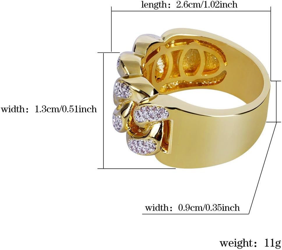 • WARM TIPS:This cuban chain ring is also the perfect match partner for your Cuban chain links and Tennis chain ! When you wear a Cuban link chain or tennis chain link and you wear this ring, you will be dazzling become a shining star in various activities! About maintenance: Avoid to contact with chemicals and collision or friction ring surface; With soap, weak detergent or warm water can take on an altogether new aspect; When not wearing, please wipe clean with a soft cloth, then save it.