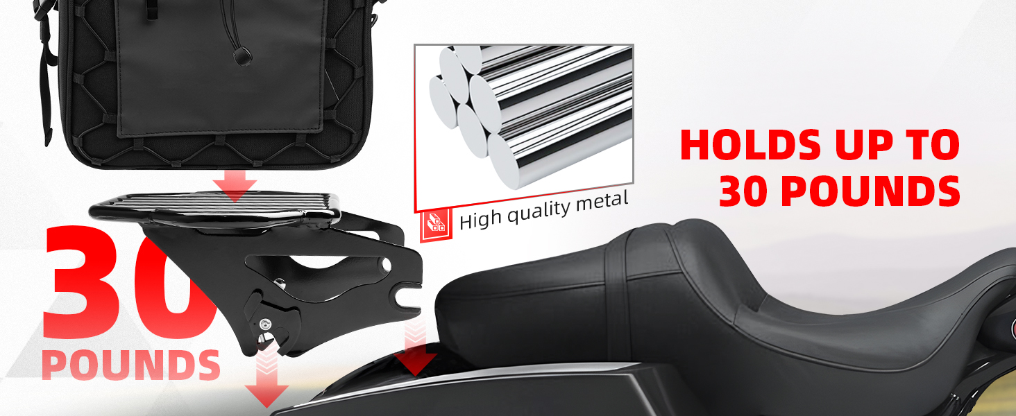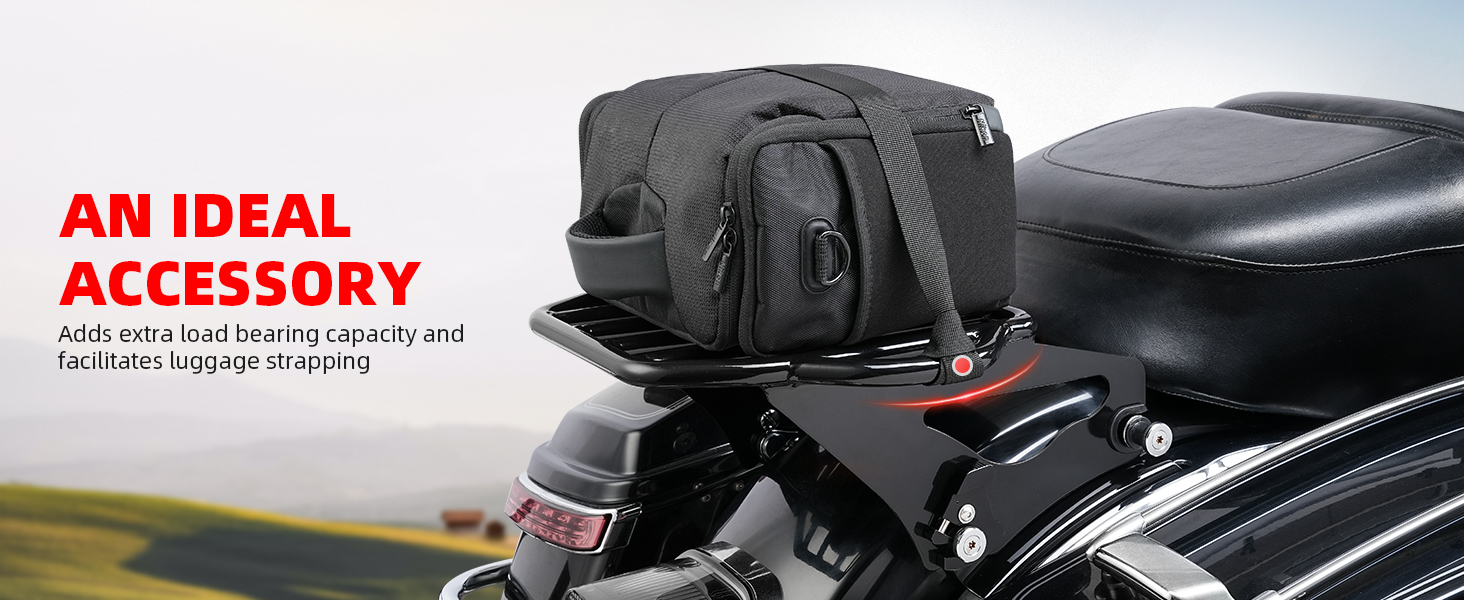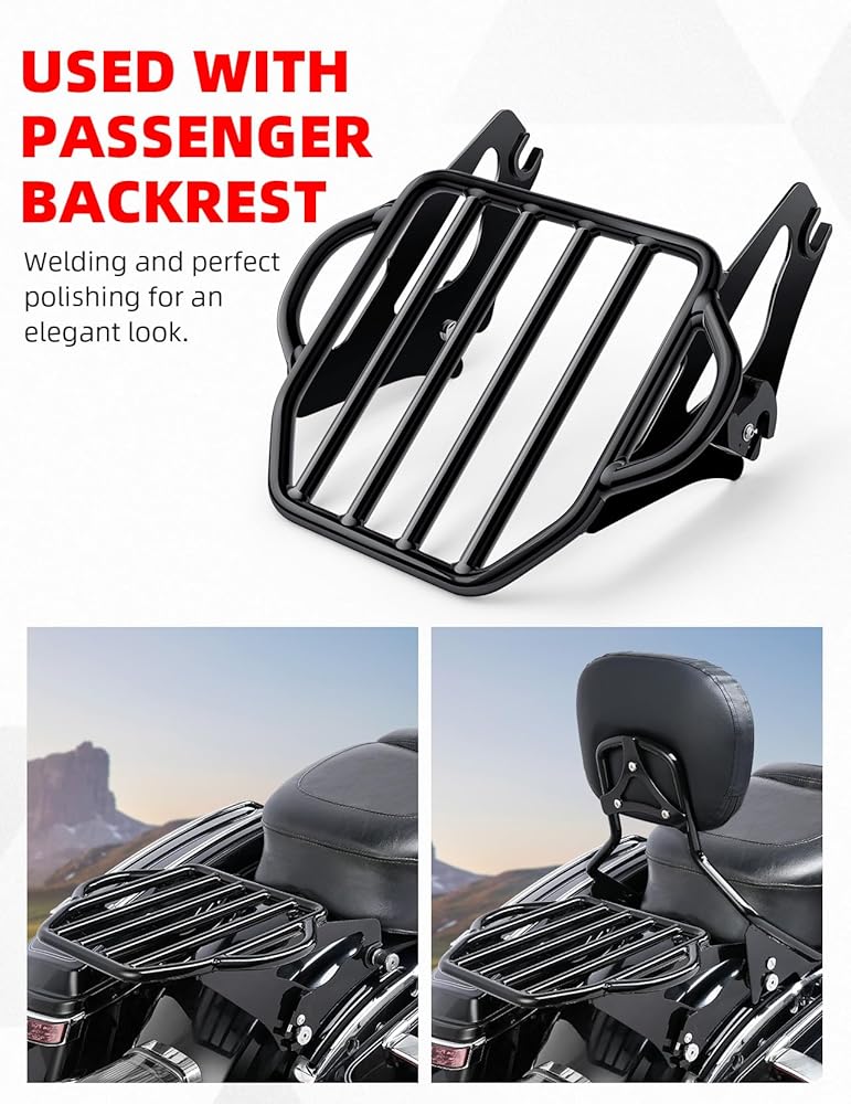 【متوافق】-- رف أمتعة أسود قابل للفصل من ما بعد البيع متوافق مع موديلات Harley Davidson Touring 2009 - يتطلب لاحقًا تجهيزًا بمجموعات أجهزة إرساء من 4 نقاط. (نماذج Touring 2009 الأحدث المجهزة بحقيبة أمتعة متينة للتركيب تتطلب شراء مجموعة تحويل حزمة الجولات القابلة للفصل المناسبة.) تتطلب موديلات FLHX وFLHXS وFLTR وFLTRX شراء مجموعة نقل الهوائي بشكل منفصل أو مجموعة الهوائي المخفية.