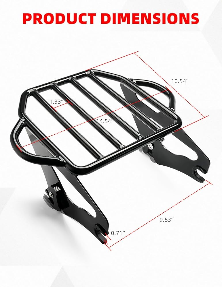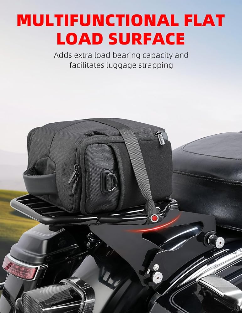 【أكسسوار مثالي】-- رف تثبيت خلفي للدراجة النارية من أمازيشا، الحل الأمثل لحمل الأمتعة على دراجتك السياحية! تم تصميم رف الأمتعة هذا ليكون متعدد الاستخدامات وعمليًا ومتينًا، ويوفر مساحة آمنة لحمل حقائبك أو معدات التخييم أو أي أساسيات أخرى تحتاجها على الطريق.