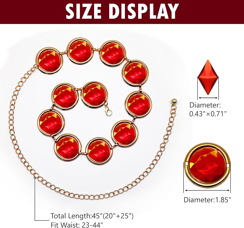 مجموعة رافين متعددة الاستخدامات: حزام الجوهرة الأحمر الرائع هذا، المزين بالأحجار الكريمة المتلألئة، يعزز صناعة المجوهرات ومجموعات لعب الأدوار. متعددة الاستخدامات ومثالية للارتداء مع الفساتين في المآدب، وهي مثالية لحفلات الهالوين والارتداء اليومي ومهرجانات الرسوم المتحركة والحفلات ذات الطابع الشخصي والحفلات التنكرية والكرنفالات وعيد الميلاد وعيد الفصح ورأس السنة الجديدة والمزيد.