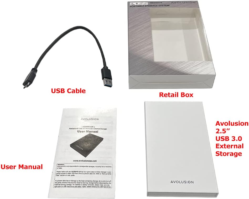 Avolusion Portable Storage System (HD250U3-WH) 500GB Ultra Slim 2.5" SuperSpeed USB 3.0 Portable External Gaming Hard Drive (White) is designed to attract the eyes of user at a glance with durable aluminum chassis external gaming hard drive. The Avolusion HD250U3-WH 500GB endeavors top quality design in durable aluminum case, with slim trimming, which make the Avolusion HD250U3-WH 500GB Slim USB 3.0 External Gaming Hard Drive a fine piece of storage device on your palm.