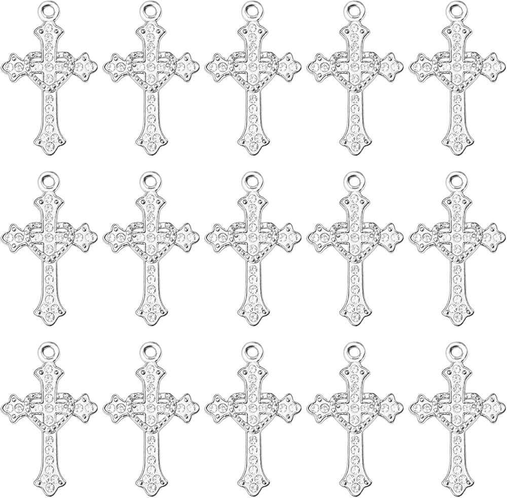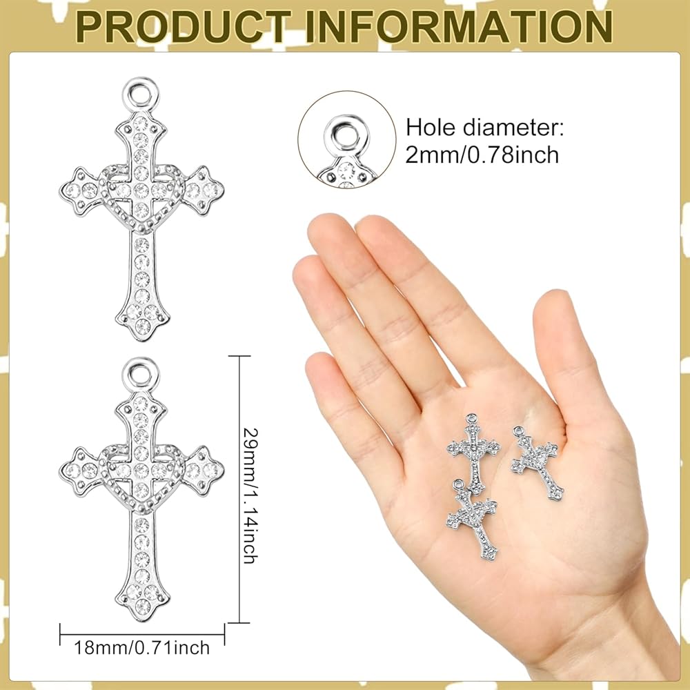 【تصميم فريد من نوعه على نحو عصري】تم تصنيع الحليات المتقاطعة الصغيرة بعملية طلاء كهربائي صديقة للبيئة. إنه لامع بشكل رائع ويبلغ أبعاده 28.9 × 18 × 3 ملم (1.14 × 0.71 × 0.12 بوصة)، مما يجعله صغيرًا وساحرًا. تم تزيين تصميم الصليب الملتف على شكل قلب بأحجار الراين المتلألئة، مما يعزز إشراق الصليب.