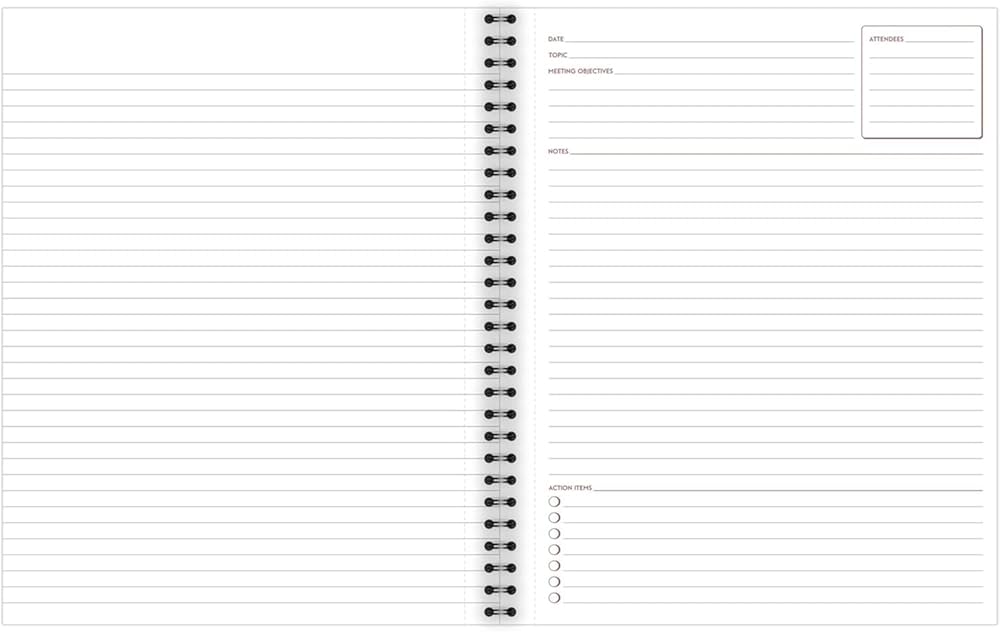 - Unique format helps organize your meeting notes and action items
