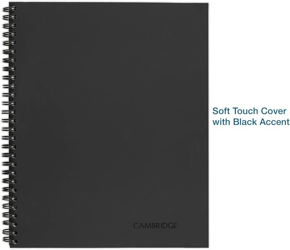 Cambridge Notebook، دفتر أعمال، 8-1/4 بوصة × 11 بوصة، 80 ورقة، مسطرة، ملاحظات الاجتماعات، غطاء مرن، سلكي، رمادي (06132) (عبوة من 2)