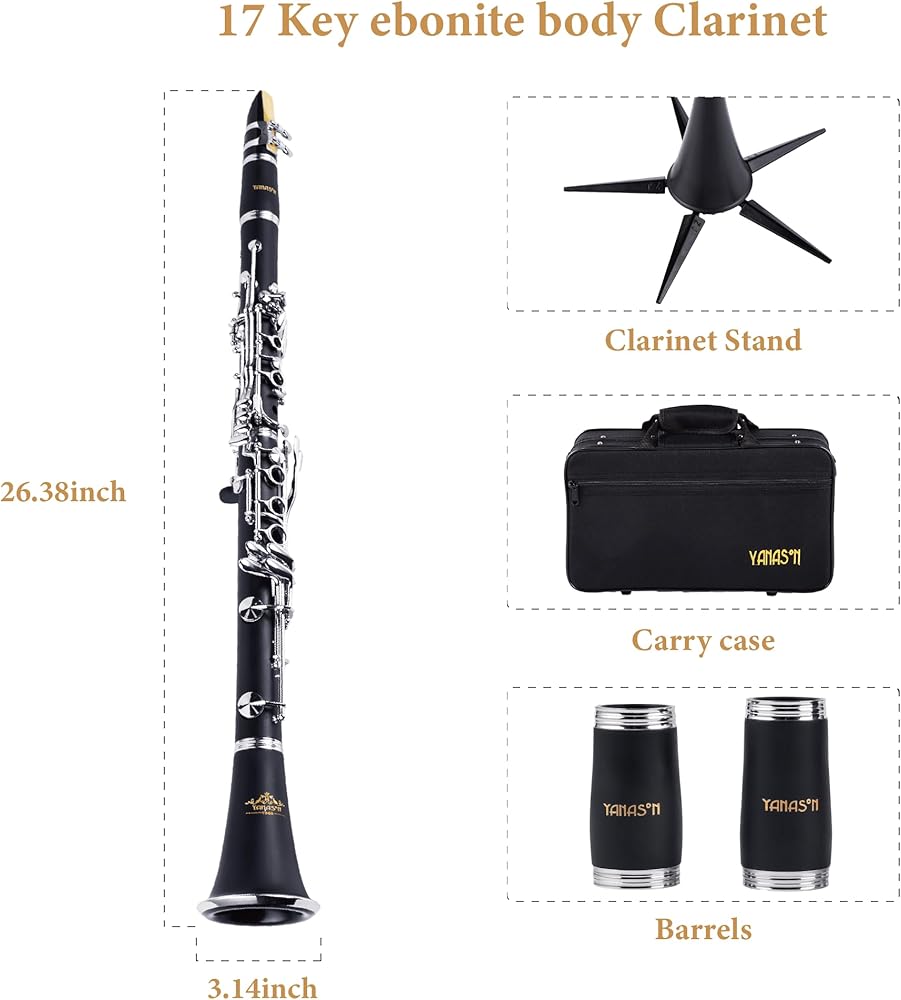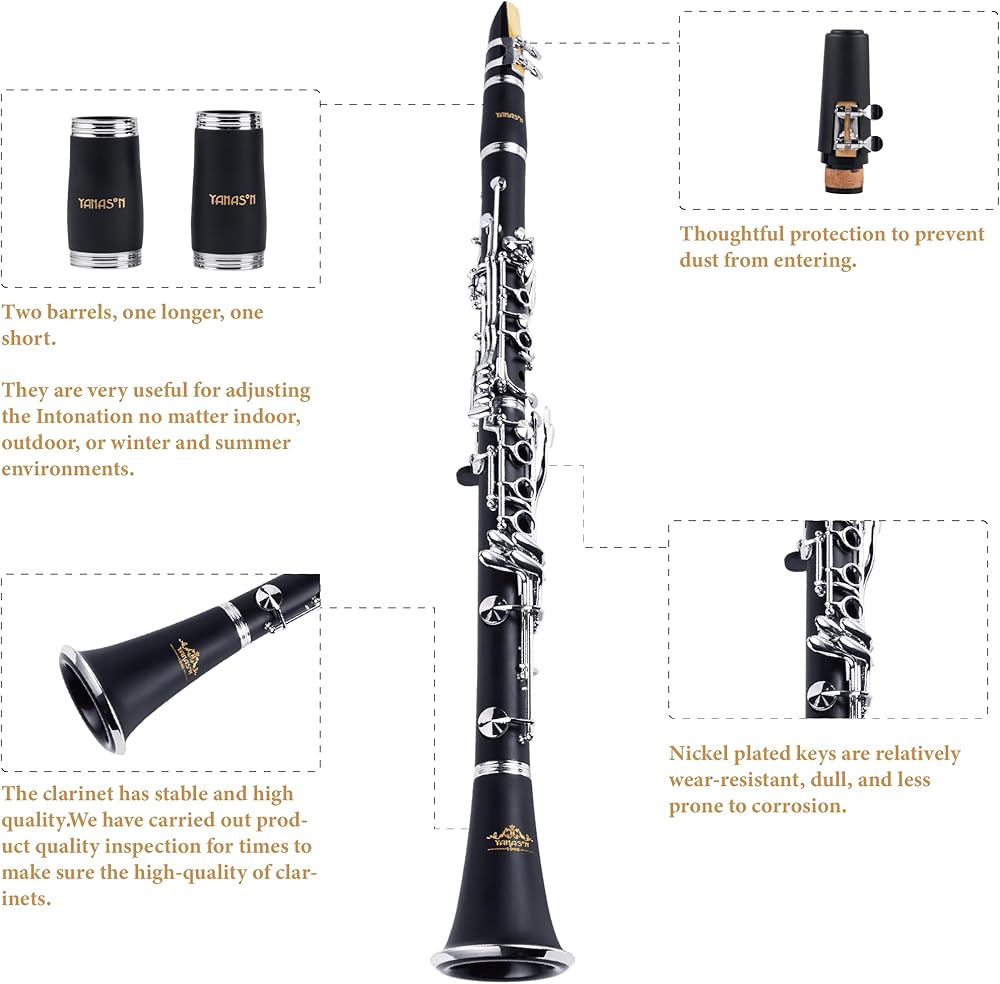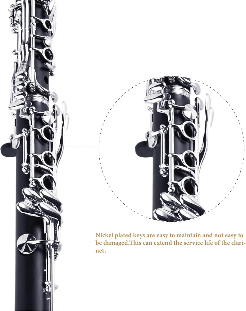 مفتاح Bb (B Flatt) clarinet مع مفاتيح مضمنة مع مسند إبهام قابل للتعديل