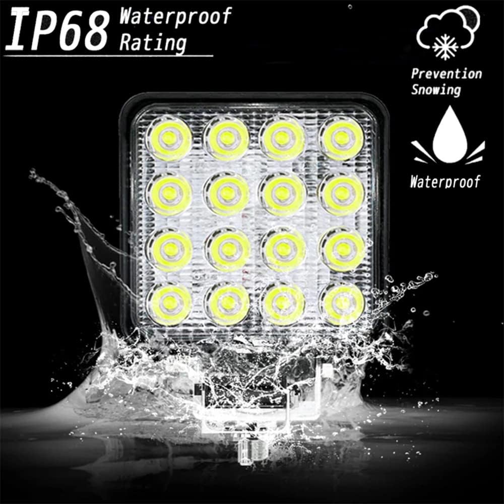 【IP67 مقاوم للماء】مصباح عمل LED مقاوم للماء IP67، مقاوم للغبار والصدمات، يحمي شريط الضوء بشكل فعال من المطر أو الضباب أو الغبار. يمكن أن توفر لك أضواء القيادة بيئة قيادة آمنة في الأحوال الجوية السيئة.