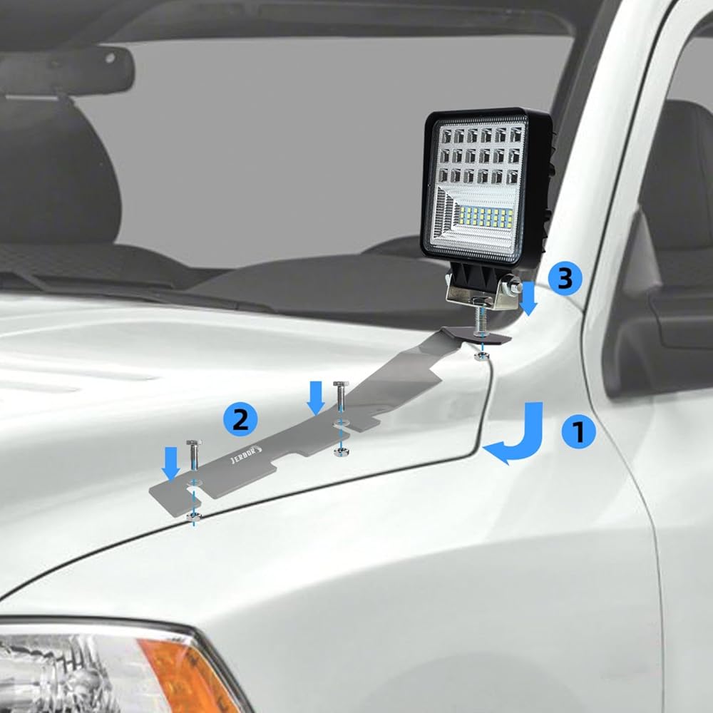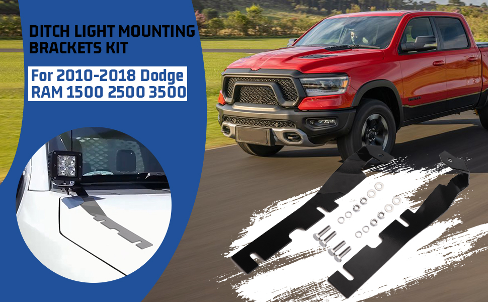 JERBOR سبائك الألومنيوم خندق ضوء تصاعد بين قوسين عدة، غطاء محرك السيارة العلوي المفصلي خندق الجانب عمود أدى ضوء قرنة جبل قوس لدودج رام 1500 2500 3500 2009-2018، 2 سنة الضمان