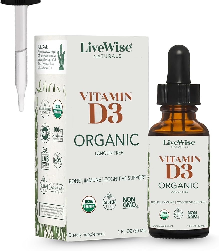 Live Wise Naturals D3 is a unique liquid formula developed for vegans, strict vegetarians, and those who prefer a form of vitamin D3 that isn't derived from lanolin. This plant-based liquid formula made from edible lichen is in the natural form of vitamin D (cholecalciferol), the same form our bodies make from sunlight and the form our bodies absorb best. Live Wise Naturals plant-based vitamin D3 promotes a wide variety of vital functions in the human body, assisting in healthy cognitive function and brain development to healthy functioning of the eyes, bowels, and immune systems.