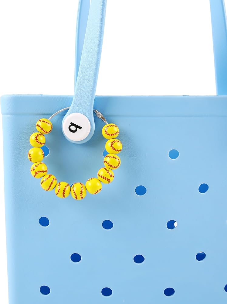 Sporty Handbag Enhancement: Elevate your handbag game with this charming baseball accessory, and beach tote bags. Add a touch of athletic flair to your everyday ensemble with this delightful wooden bead decoration.
