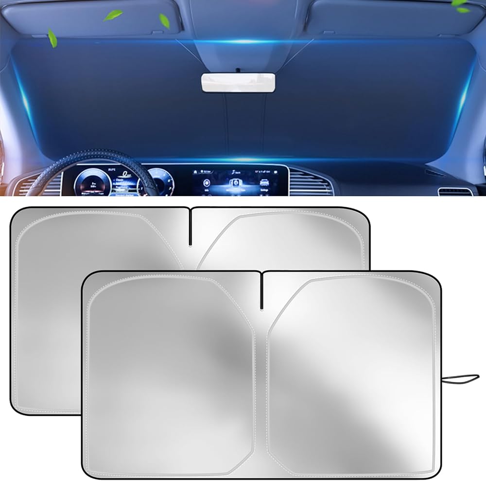 【جودة عالية ومتانة】الزجاج الأمامي لظلال نافذة السيارة مصنوع من مادة البوليستر العاكسة المتينة التي تحجب وتعكس الحرارة والأشعة فوق البنفسجية، وتقلل من تراكم الحرارة، وتضمن راحة باردة في أيام الصيف الحارة. يوفر الإطار الفولاذي المقوى متانة أفضل، ويقاوم الطيات وإعادة الاستخدام التي لا تعد ولا تحصى. أسود من جانب وفضي من الجانب الآخر. استخدم الجانب الفضي لإبقاء سيارتك باردة في الصيف واستخدم الجانب الأسود لإبقاء سيارتك دافئة في الشتاء.