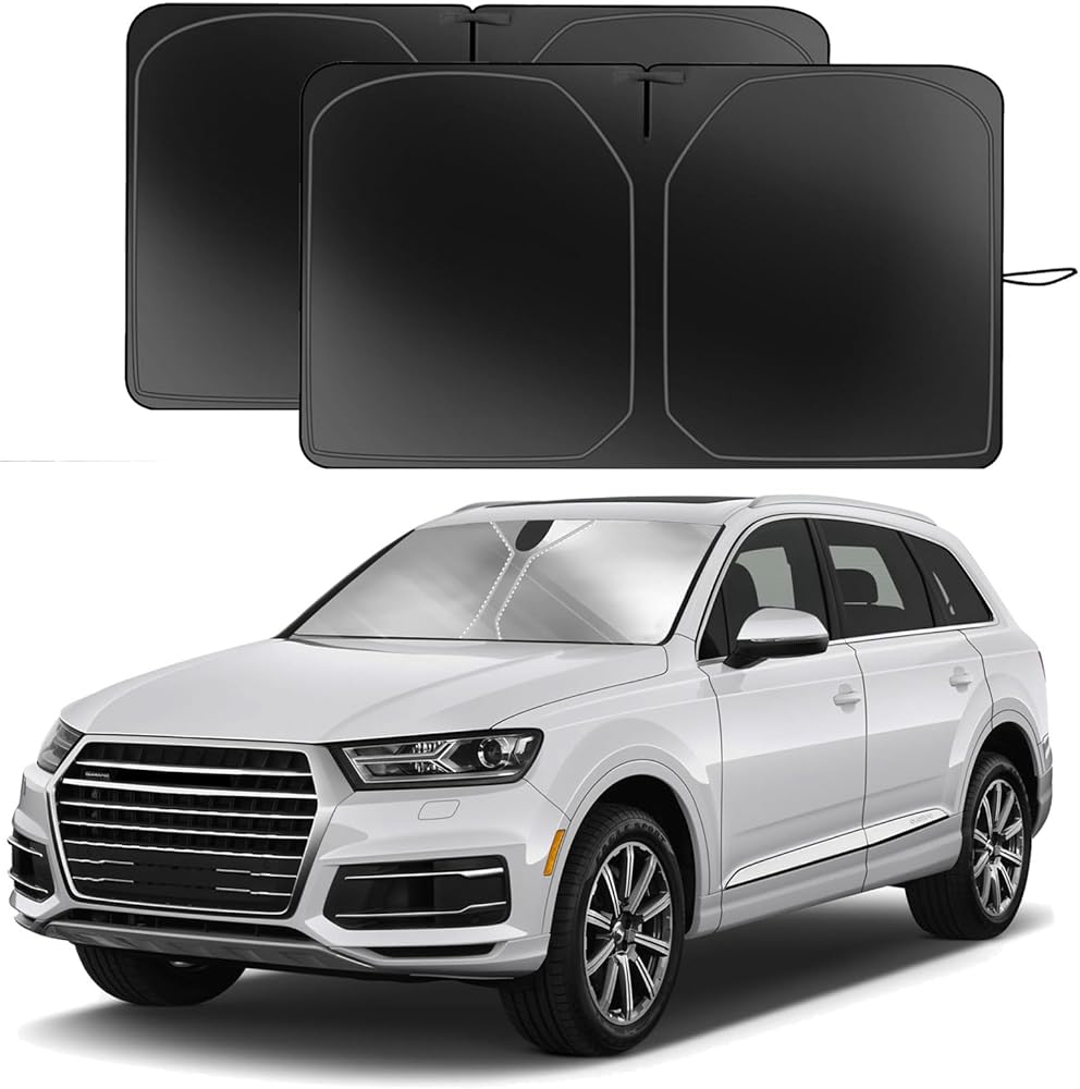 【الموديلات المتوافقة】حجم ظلة الشمس للزجاج الأمامي للسيارة هو 55.9 بوصة × 31.5 بوصة، وقد تم تصميم ظلال السيارة للنوافذ الأمامية لتناسب معظم الزجاج الأمامي ذي الحجم القياسي بشكل مثالي. يرجى قياس حجم الزجاج الأمامي لسيارتك بعناية قبل الشراء. يساعد هذا الظل بشكل كبير في الحفاظ على انخفاض درجة الحرارة وحماية الجزء الداخلي - ناهيك عن الحفاظ على عجلة القيادة من أن تكون ساخنة عند لمسها!