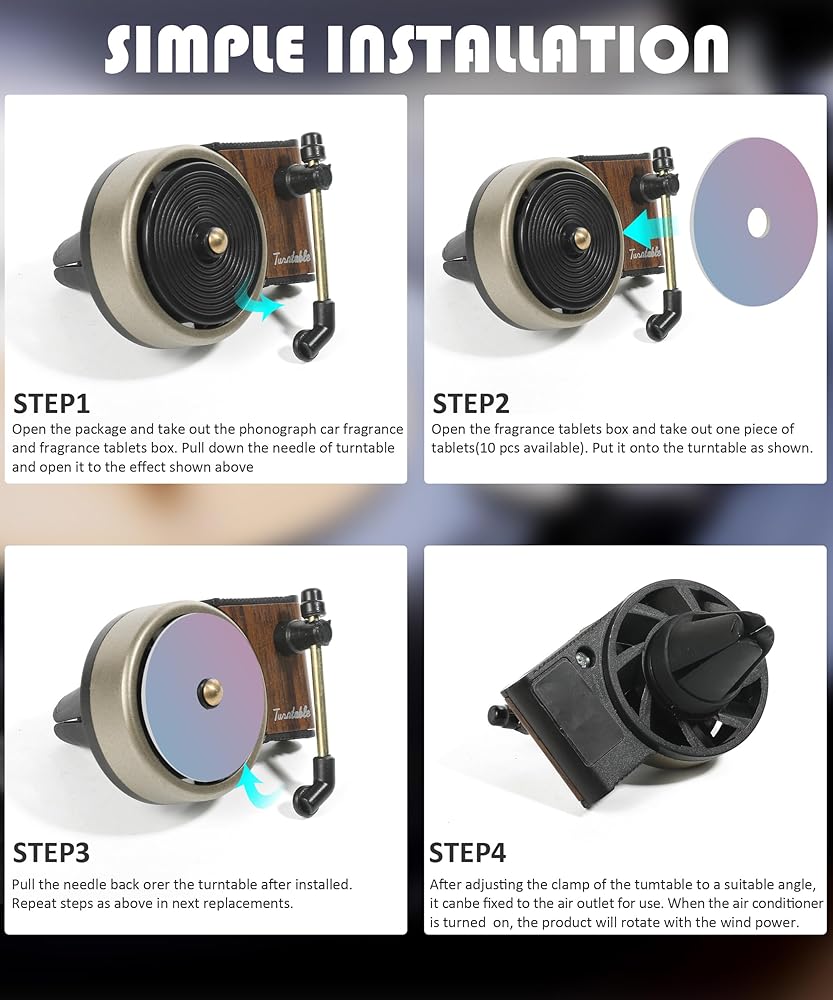 • [Unique Design] This car air freshener clip features a record player shaped design with an iconic Taylor cover, adding a touch of fashion and personality to your car interior. This is a retro art style car decoration that takes you back to the era of tape recorders.
