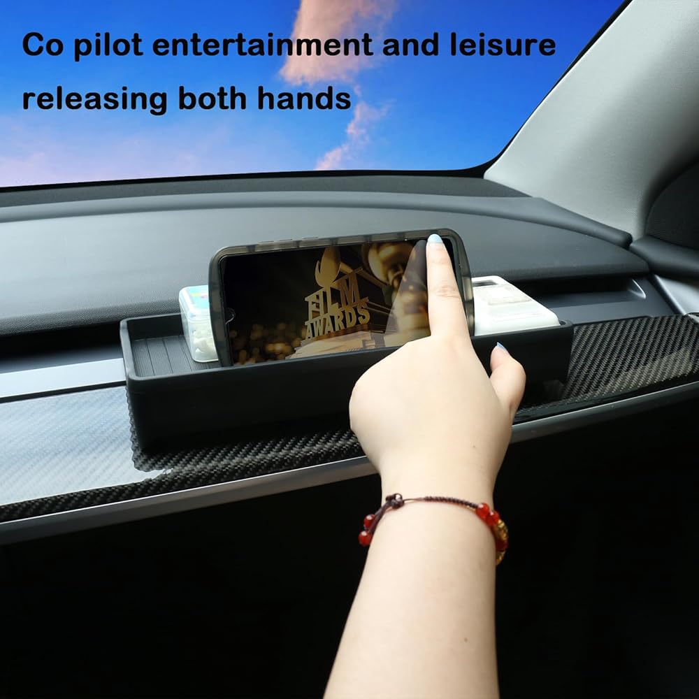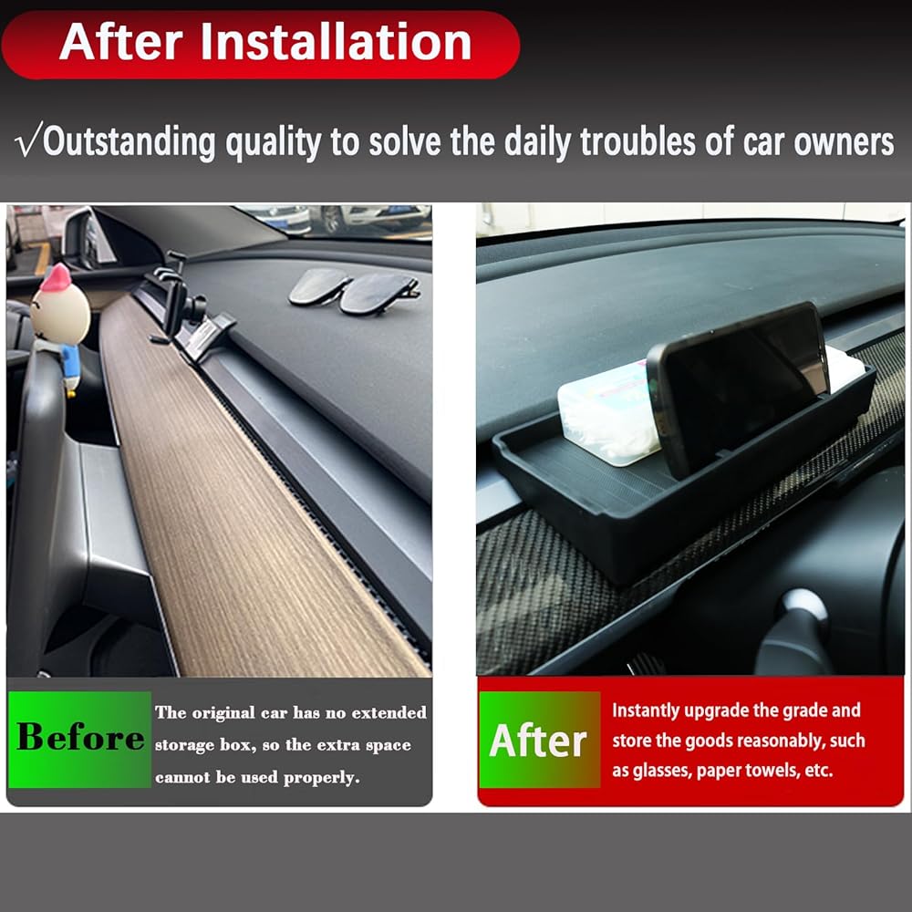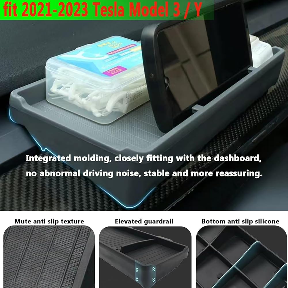 【تخزين مخفي】تستخدم صينية لوحة أجهزة القياس الخاصة بـ Tesla المساحة الخاملة خلف الشاشة، وتضيف المزيد من مساحة صينية التخزين للسيارة. يمكن لصينية السيليكون تخزين الأنسجة والمفاتيح والساعات وبطاقات المرور وما إلى ذلك، مما يحسن من نظافة السيارة.