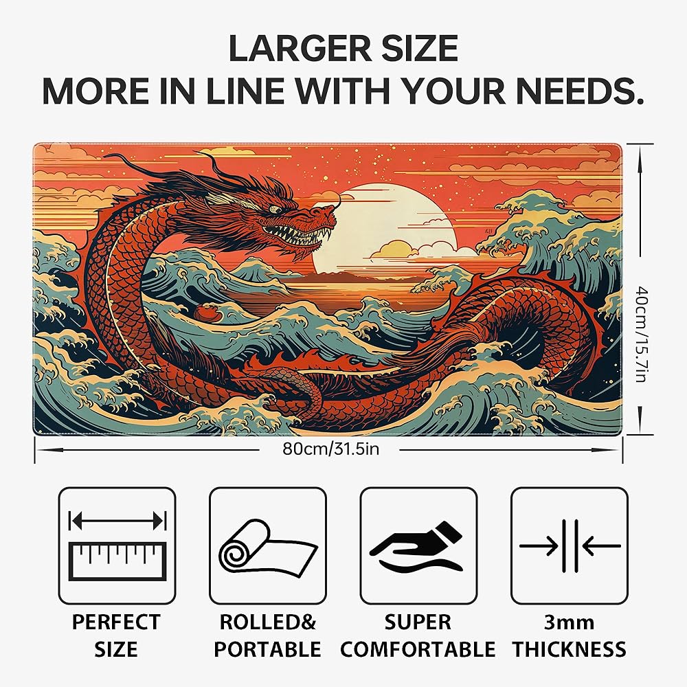 • ♥【Extra Large Mouse Pad】Our XXL Moon Cat mouse pad is designed for comfort and productivity. Measuring at 31.5x15.7 inches, it provides More space to accommodate your mouse, keyboard, and other desk essentials. The extra thickness of 3mm not only reduces noise but also ensures a more comfortable experience for your hands.