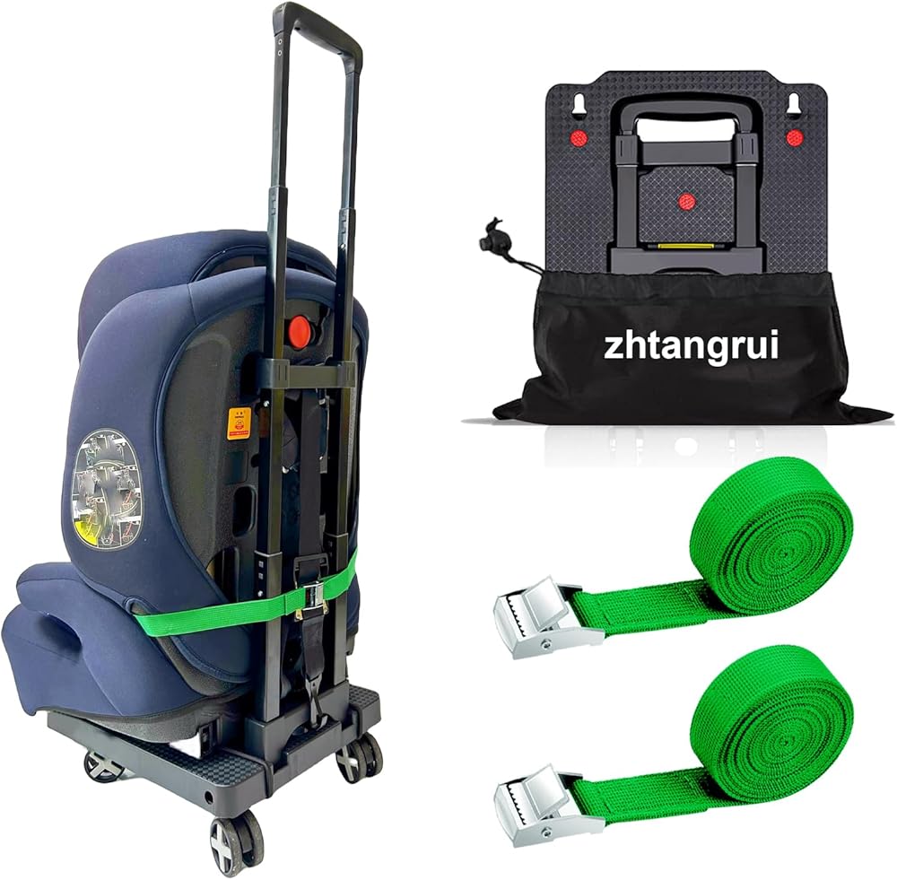 عربة مقعد السيارة للمطار - حاملة دوارة لمقعد السيارة بالمطار للطائرة - عربة مقعد السيارة بعجلات - عربة أمتعة قابلة للطي لحقيبة الظهر