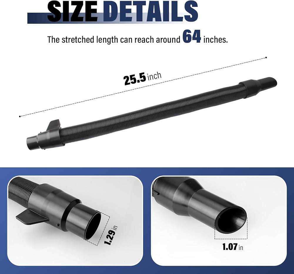 【Product Size】The length of the shop vac hose is about 25.2 inches, and it can reach about 64 inches after stretching. M18 vacuum hose allows you to access hard-to-reach areas and clean more efficiently.