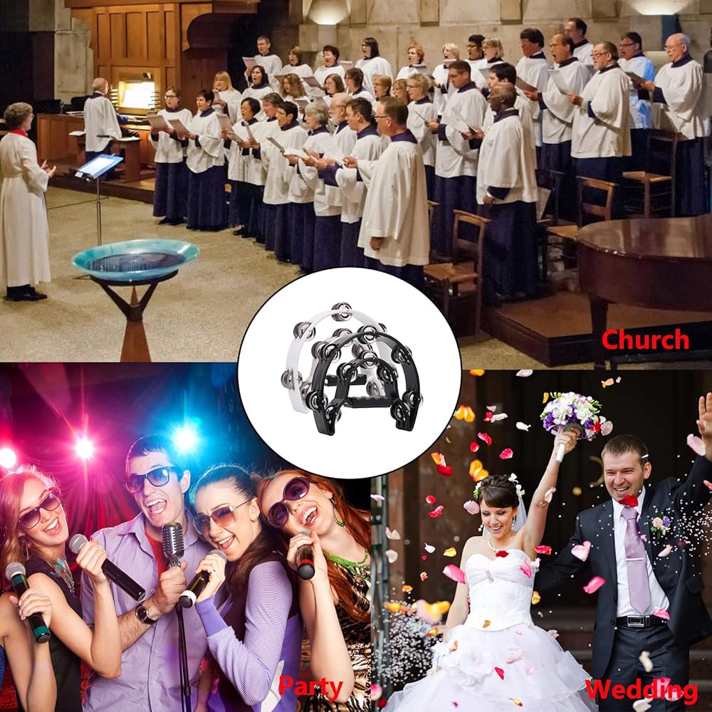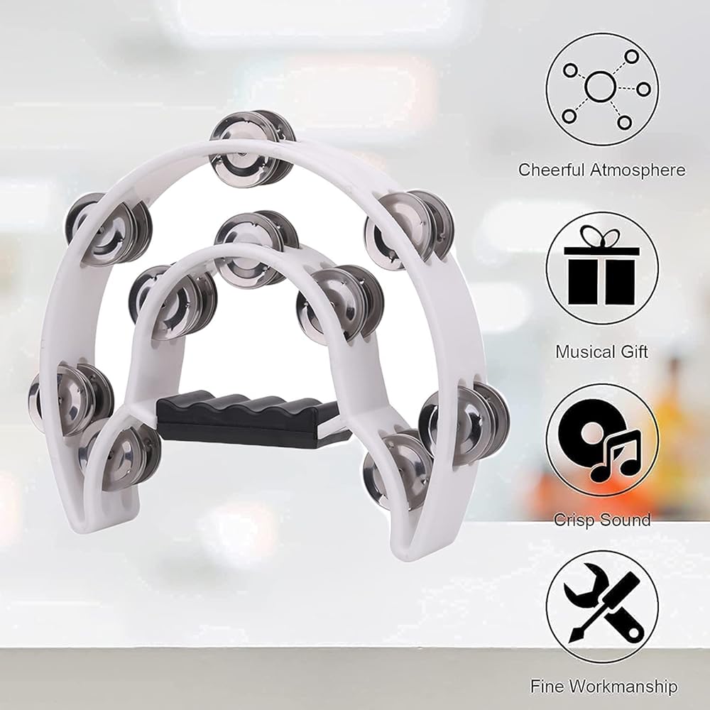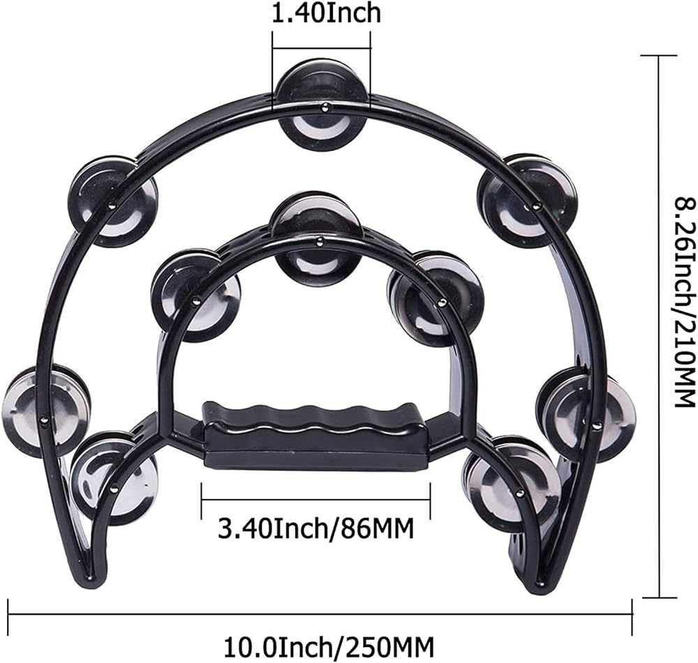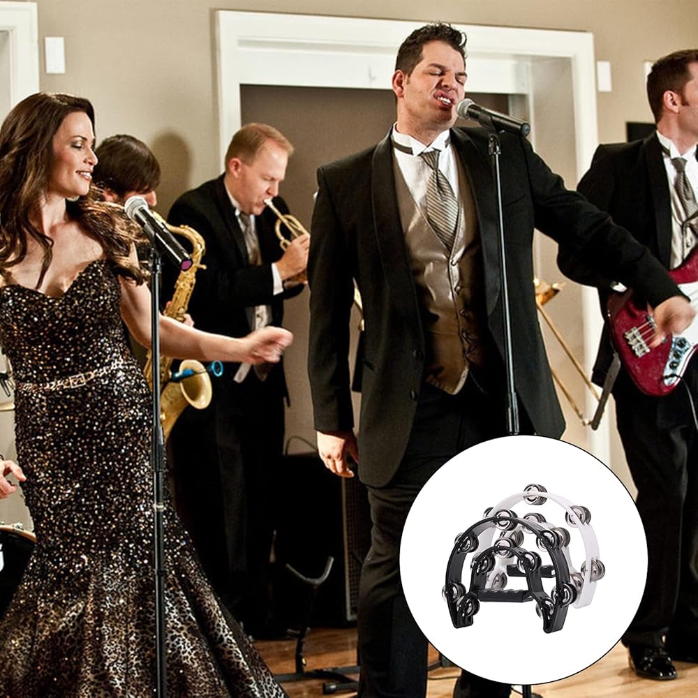 2 حزمة من الدف المزدوج مقاس 25.4 سم للبالغين، الدف الموسيقي نصف القمر 20 طبلة قرع معدنية محمولة باليد، دفوف موسيقية بلاستيكية للبالغين، الكنيسة، KTV، الحفلات، أسود وأبيض