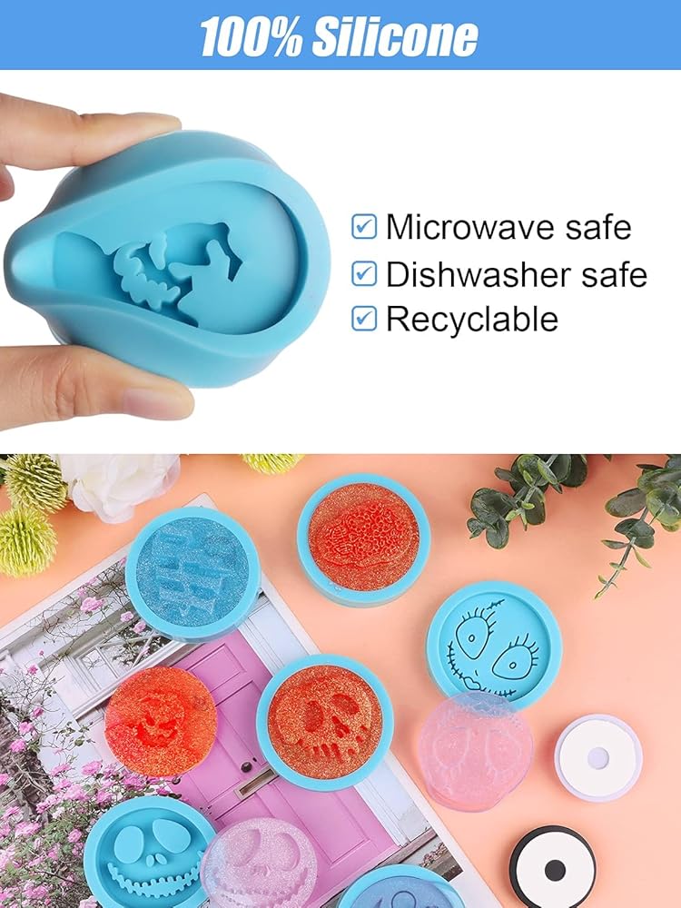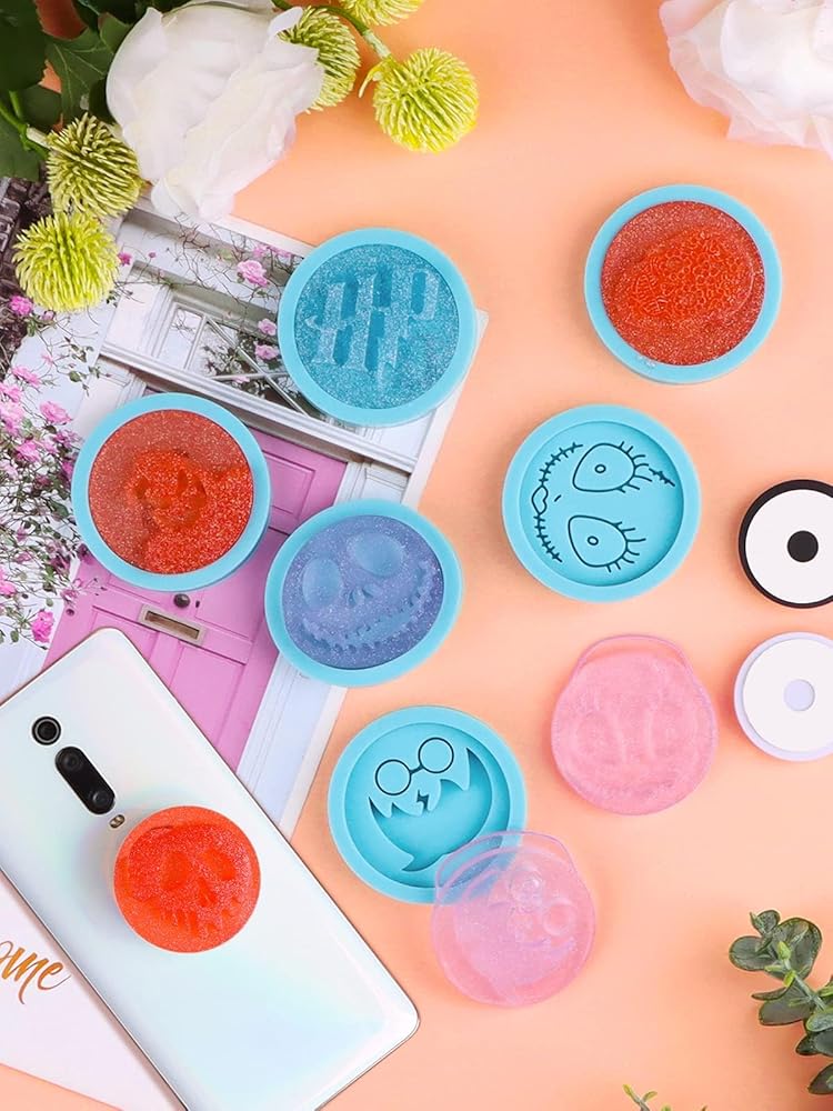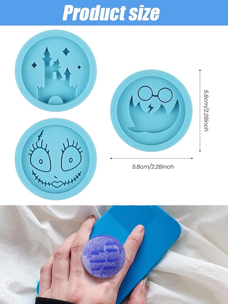 نطاق واسع من الاستخدام: 8 قطع من قوالب الراتنج الدائرية الزرقاء من السيليكون و10 قطع من حوامل الهاتف القابلة للطي الدائرية القابلة للسحب. مناسبة لصنع قالب صب فريد للهالوين أو الكريسماس أو عيد الشكر أو غيرها من المناسبات والأعياد. مثالي للعائلة والأصدقاء ومصنعي الراتنج ومحبي الأعمال اليدوية.
