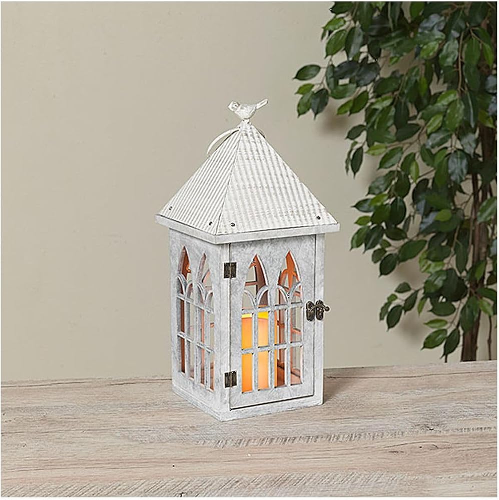 فانوس جيرسون 13.5 بوصة H B/O مضاء من المعدن والخشب مع لمسة طائر وشمعة LED in Kuwait