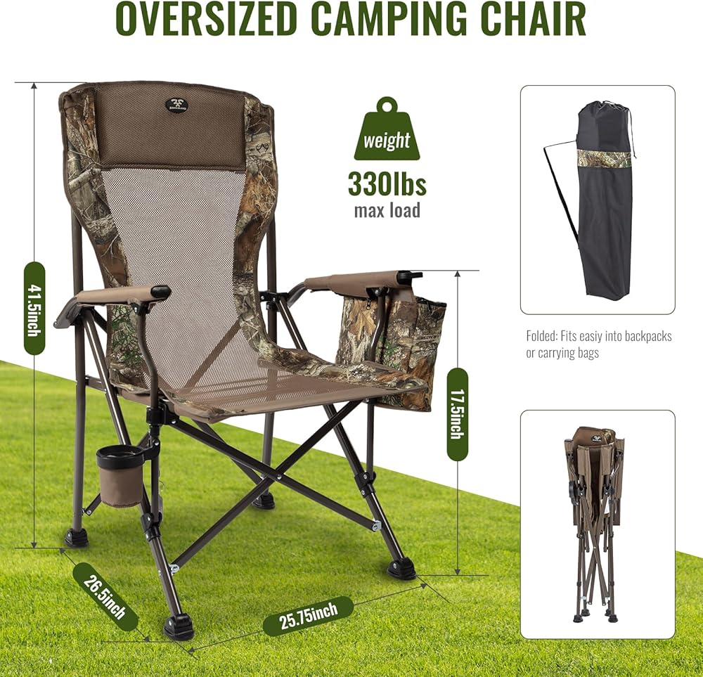• محمول وصغير الحجم: مصنوع ليتحمل، يتميز كرسي التخييم الخاص بنا بتصميم قوي بأبعاد 25.75 × 26.5 × 41.5 بوصة وسعة وزن تصل إلى 330 رطلاً. ثق في ثباته ومتانته لجميع مغامراتك الخارجية.