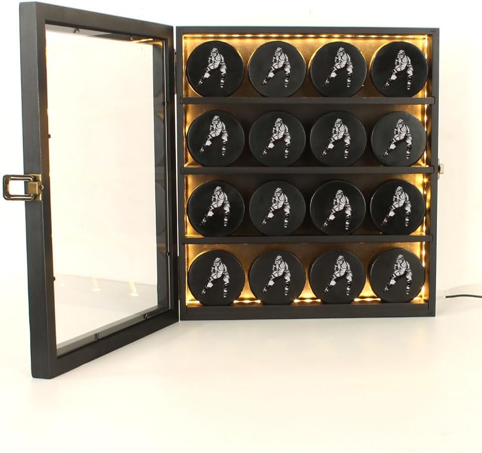hockey puck case can well protect your cherished memorabilia or collectibles,With lighting, your collection will be better displayed and more gorgeous.Just show off your hockey puck to your friends when they come to your home.It looks so cool.