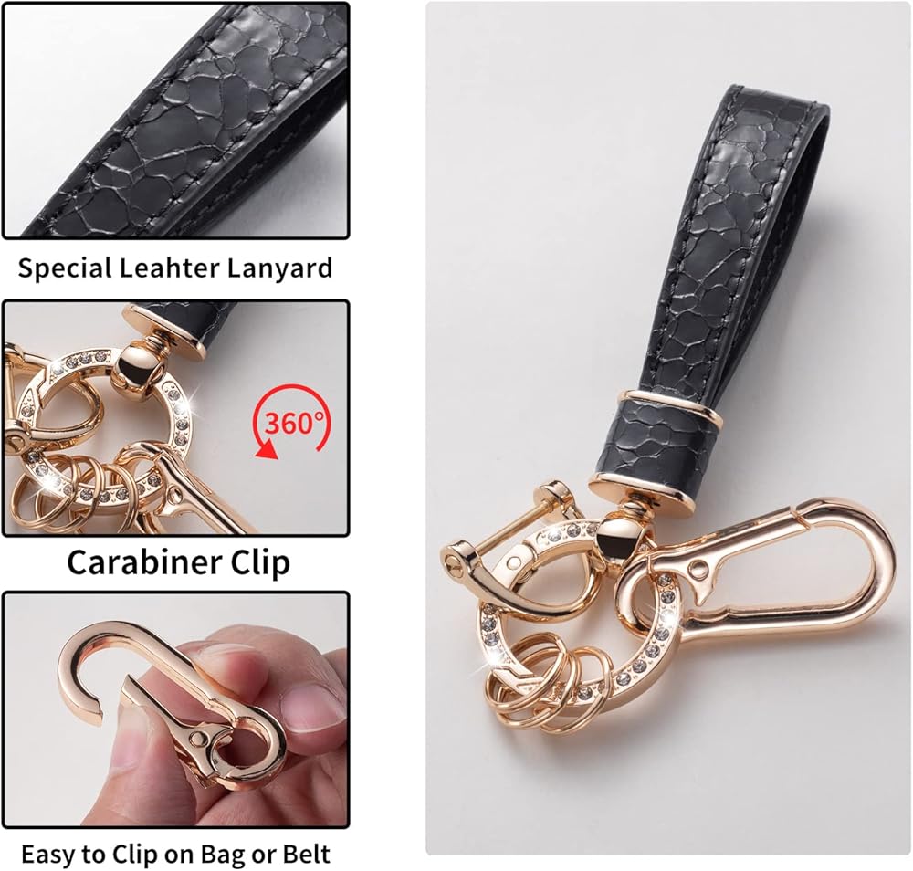 تشتمل العبوة على: مجموعة حبل سلسلة المفاتيح جي إم سي تحتوي على إبزيم على شكل حرف D مضاد للفقد، وحلقة معدنية لامعة مع 3 حلقات صغيرة إضافية تساعد في الحفاظ على مفاتيح منزلك، وحبل قصير سهل الاستخدام من الجلد الأصلي، ومشبك حلقة تسلق يسهل ربطه بالحزام الحلقات والحقائب لمساعدتك على تحرير يديك.