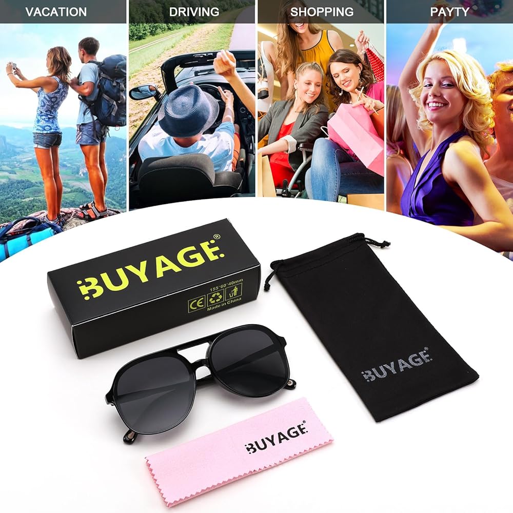 【مناسبة للعديد من المناسبات】 تتميز نظارات BUYAGE الشمسية هذه بوجود رائع في مناسبات مختلفة مثل التسوق والسفر والعطلات والصور والشاطئ والحفلات. يمكنك اختيارها للارتداء اليومي على مدار السنة ولإكسسوارات الموضة.