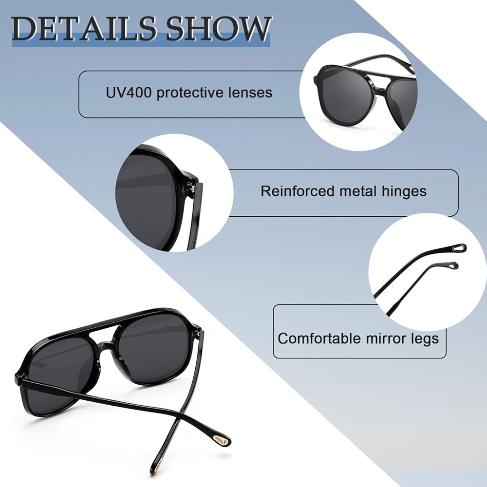 【تصميم كلاسيكي وأنيق】 تتبع نظارات الطيار الشمسية هذه تصميم النظارات الشمسية الكلاسيكية في السبعينيات، وتحتفظ بعنصر الجسر المزدوج، وتستخدم العدسات المسطحة ومجموعة متنوعة من مجموعات الألوان لجعلها أكثر أناقة. يمكن لهذه النظارات الشمسية أن تتناسب مع أشكال الوجه المختلفة.