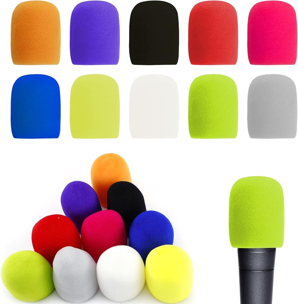 20 قطعة من اغطية الميكروفون الملونة للميكروفون قابلة لاعادة الاستخدام تناسب معظم الميكروفونات القياسية المحمولة (10 الوان)