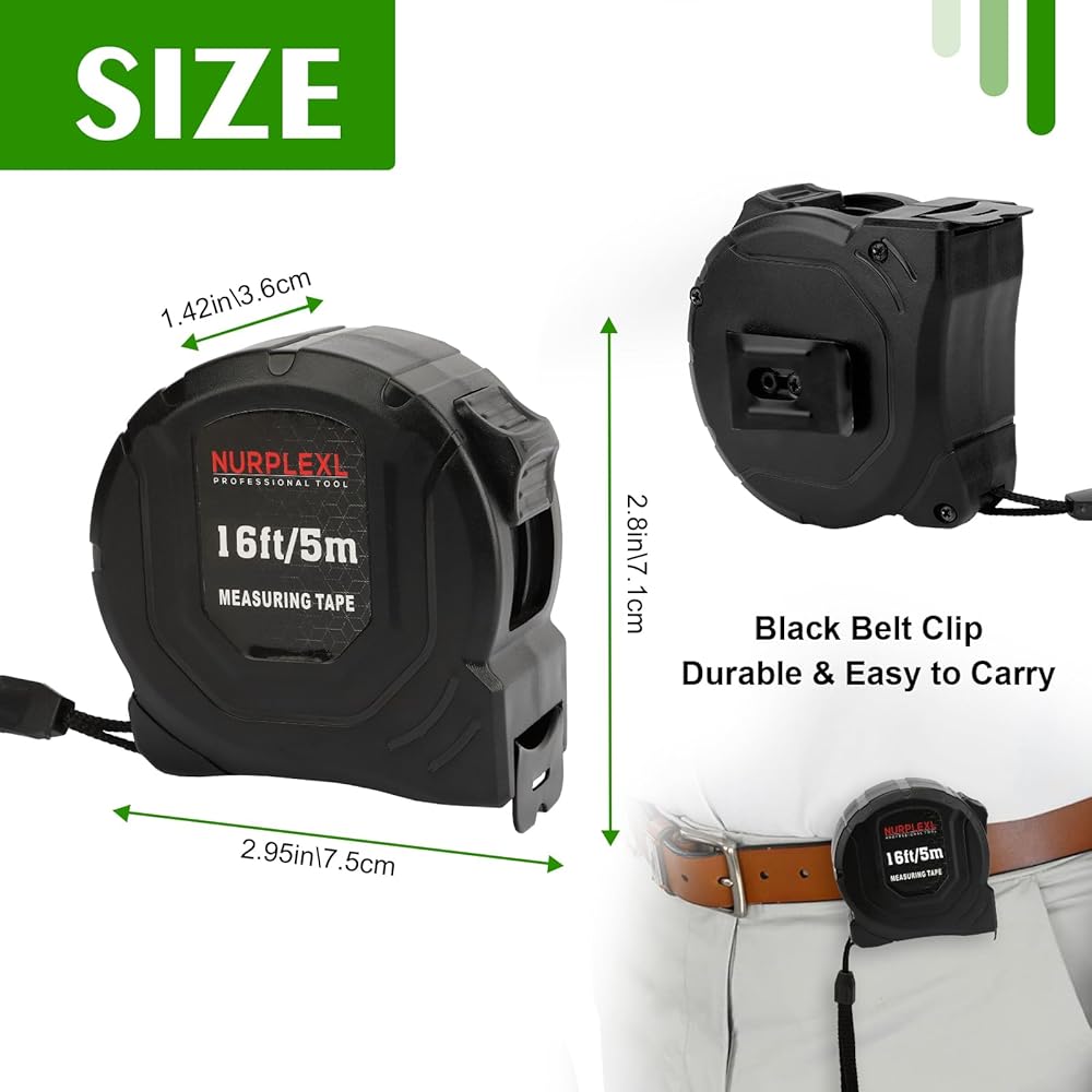 INTIMATE DESIGN: The tape measure features both metric and imperial measurements, including inch, cm, and mm, belt clip and comfortable wrist strap for convenient carrying and easy access, The hook slot can be latched onto a protruding nail or screw head, which will hold the tape in place more steadily