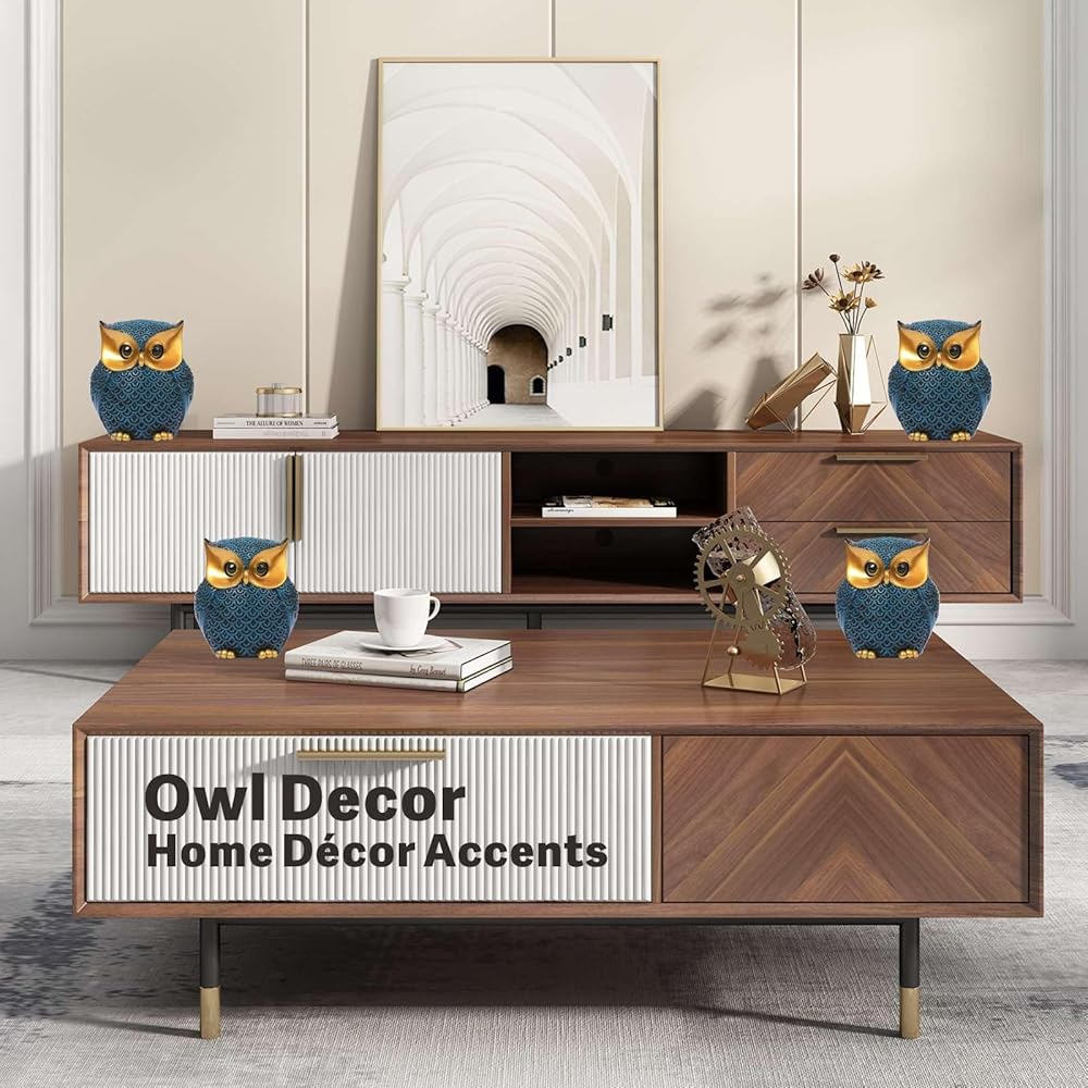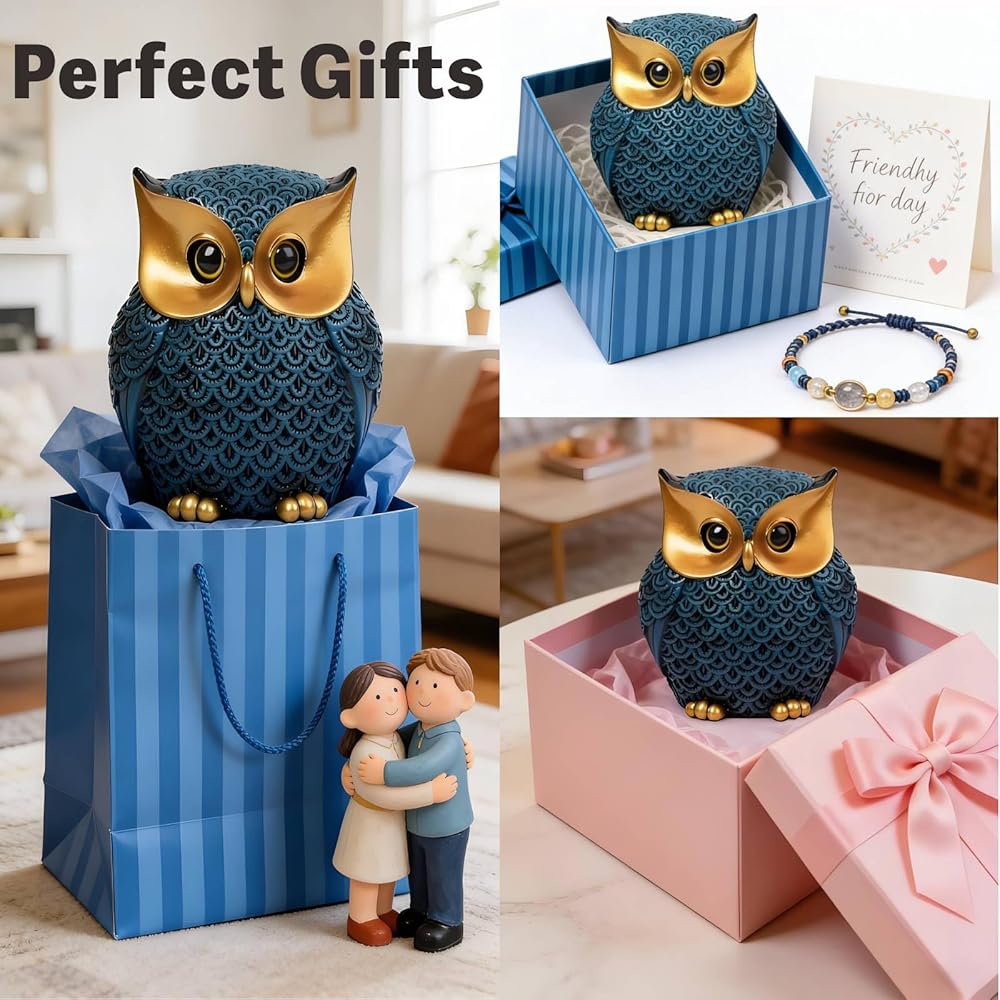 تماثيل البومة لديكور المنزل، ديكورات البومة للمنزل، ديكورات البومة للمنزل والمكتب والرف - هدايا البومة للنساء، تمثال بومة لطيف (أزرق)