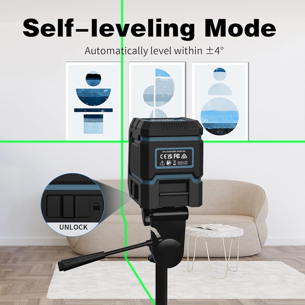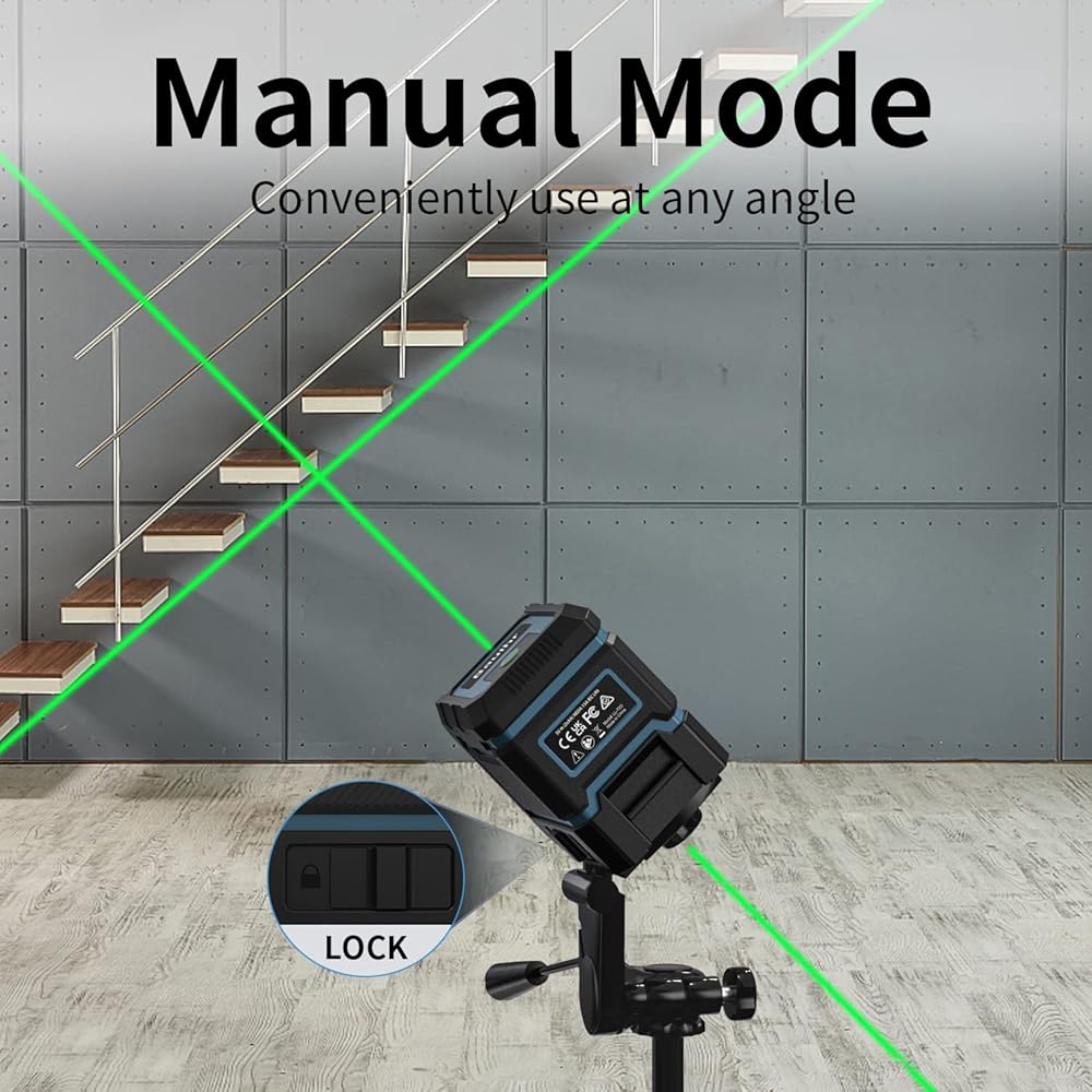 وضع التسوية الذاتية: مزود بنظام بندول ذكي، يمكن لمستوى الليزر ضبط نفسه تلقائيًا ضمن ±4 درجات، إذا كان السطح يميل إلى أكثر من 4 درجات، فسوف تومض الحزم للإشارة إلى الظروف خارج المستوى