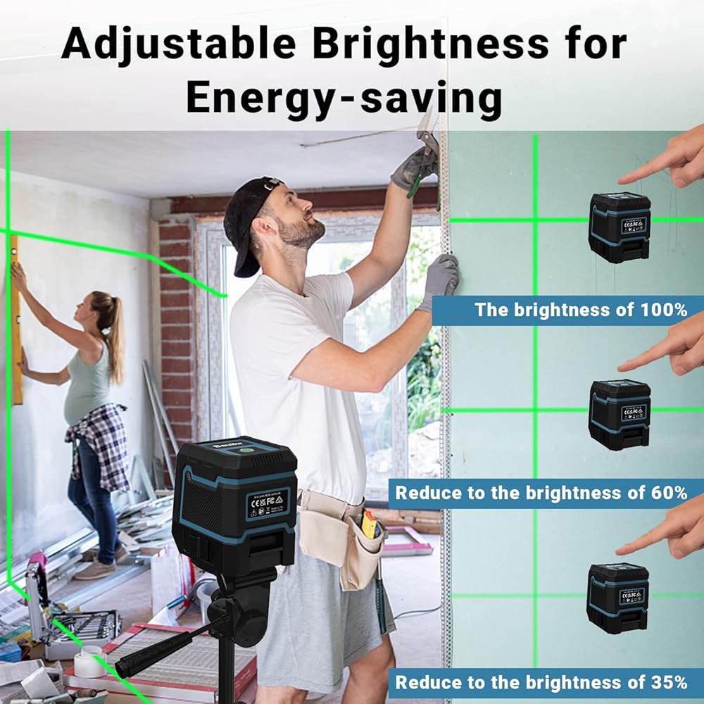 مستوى الليزر ذاتي التسوية من باويهر، مستوى ليزر أخضر متقاطع بطول 100 قدم مع تعديل السطوع، وضع التسوية الذاتية اليدوية IP54 مقاوم للماء والبطارية متضمنة
