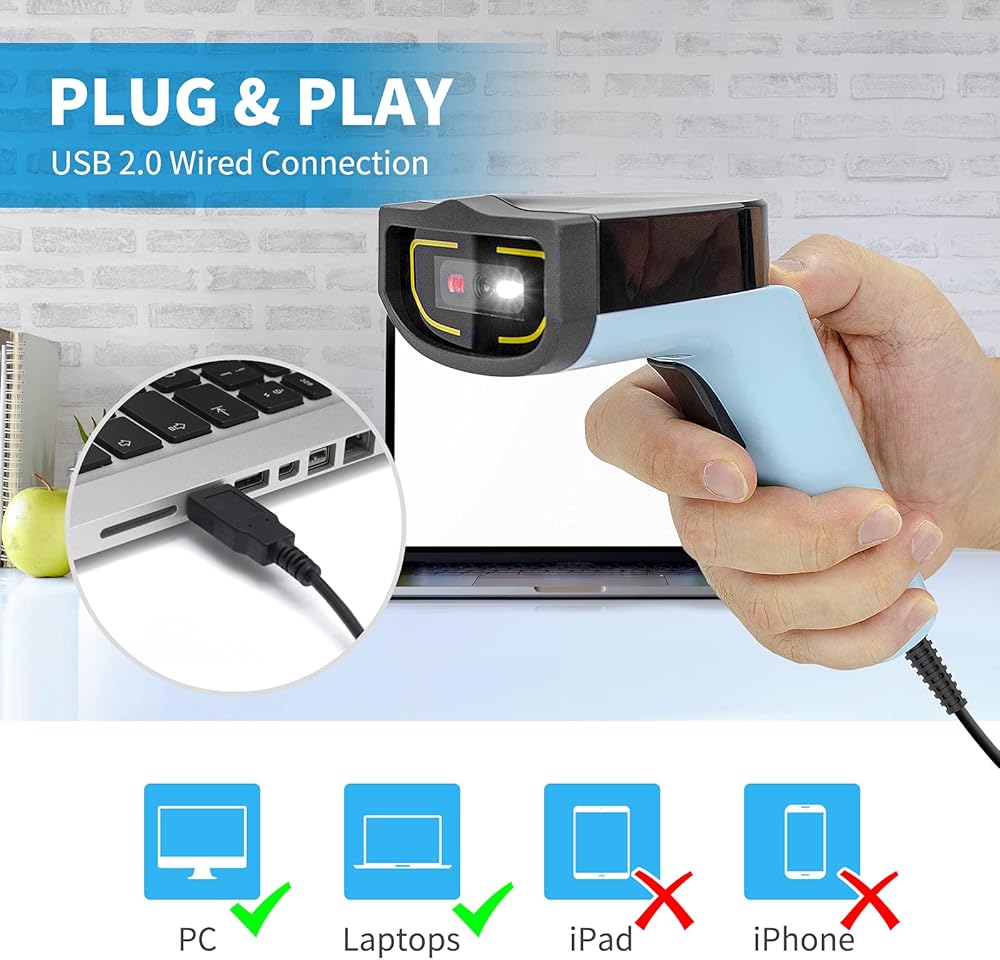قم بتوصيل الماسح الضوئي السلكي وتشغيله: أنت جاهز للمسح الضوئي عند توصيل السلك بالكمبيوتر المحمول الخاص بك. متوافق مع أنظمة التشغيل الأكثر شيوعًا، مثل Windows7/10 وMac OS وLinux وما إلى ذلك.