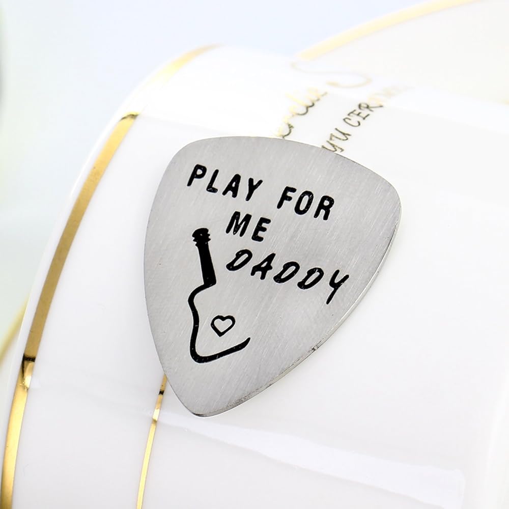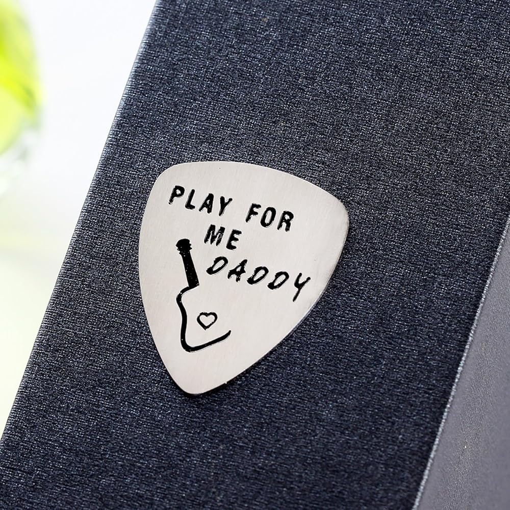 الهدية المثالية لوالدك المحبوب !! "Play for Me Daddy" عبارة عن طوابع يدوية على اختيار الجيتار هذا. دع هذا الأب المميز يعرف مدى حبك له، مع هذه الهدية الفريدة. اختيار جيتار من الفولاذ المقاوم للصدأ