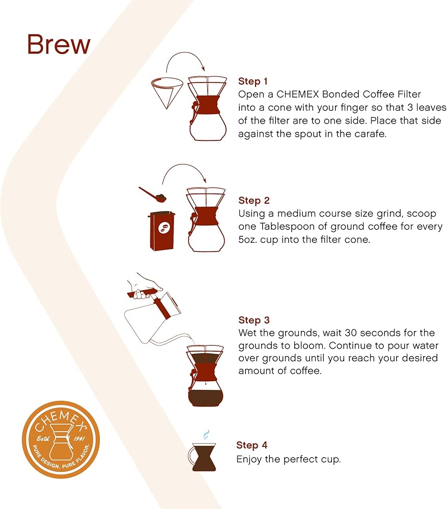 يتم قياس جميع ماكينات صنع القهوة CHEMEX باستخدام 5 أونصة. مثل 1 كوب
