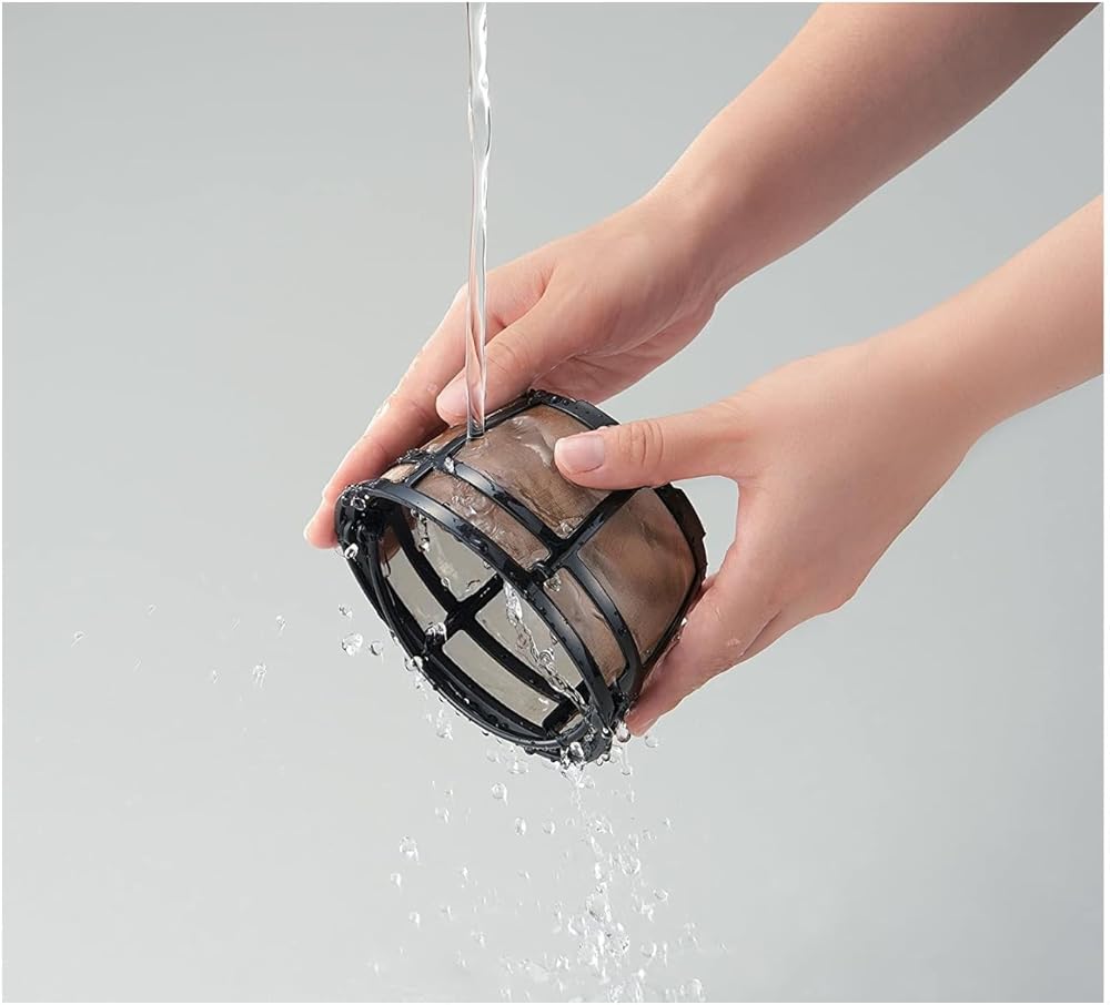 Includes: Reusable and washable, permanent stainless mesh coffee filter and measuring spoon included