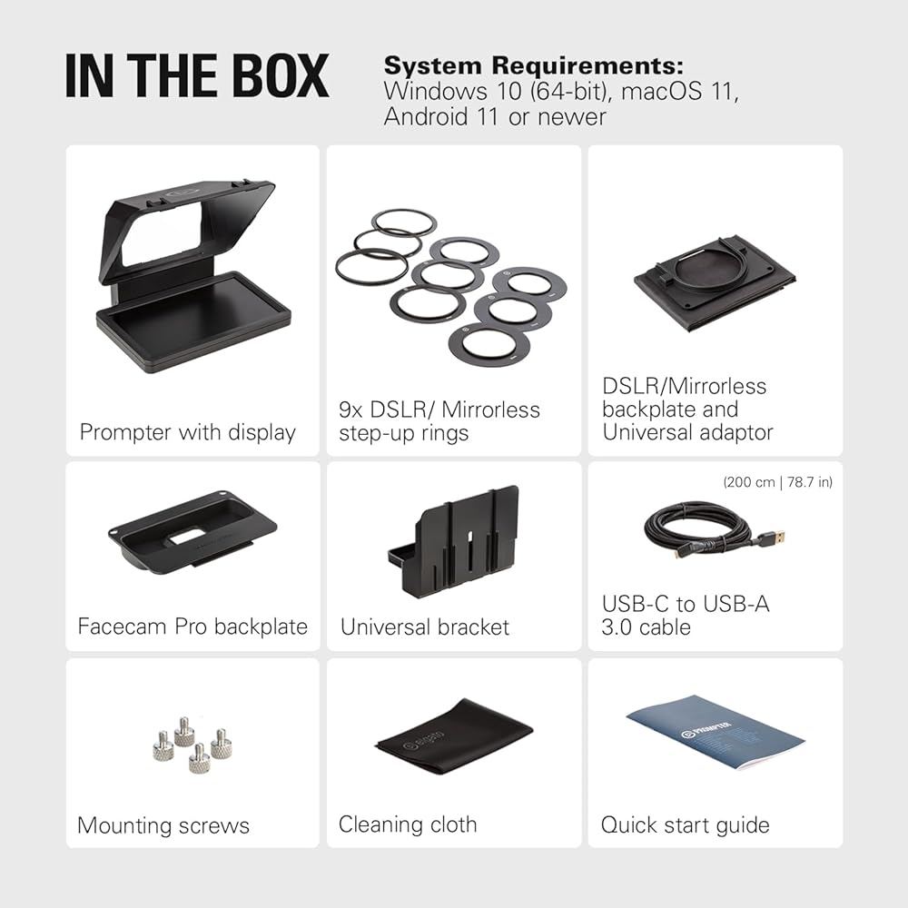 Elgato Prompter - جهاز Teleprompter مع شاشة مدمجة لليوتيوب، Twitch، Zoom، MS Teams والمزيد، يدعم DSLR/كاميرا الويب/الهاتف الذكي، شاشة عرض السحب والإفلات، يعمل مع Mac/PC وStream Deck