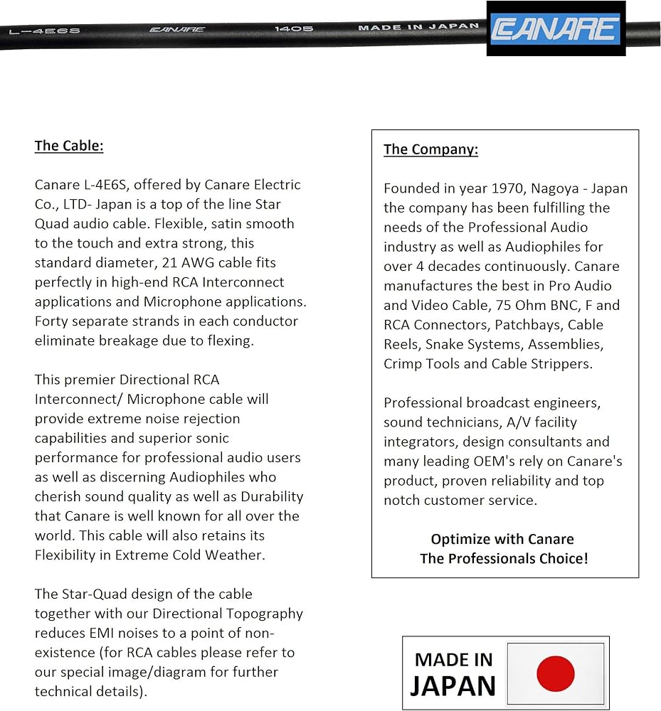 يقع مقر شركة Canare في ناغويا باليابان، وتقوم بتصنيع الكابلات والأدوات والإكسسوارات. لتطبيقات Pro-Audio/Video منذ عام 1970. يعتمد العديد من محترفي الصوت على موثوقية Canare المثبتة والجودة العالية وخدمة العملاء. قم بالتحسين مع Canare، خيار المحترفين!
