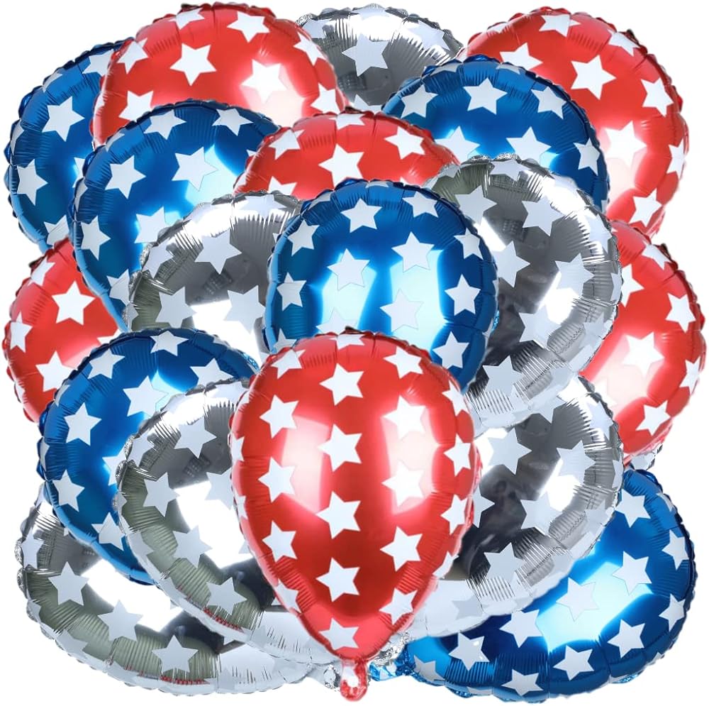 9 قطع بالونات انفجارية باللون الأزرق والأحمر والأبيض لعيد الاستقلال - 22 بوصة 4 يوليو سبايك ستاربورست ستار مخروط بالون - بالون فويل يوم الذكرى الأمريكي لديكورات الحفلات الوطنية
