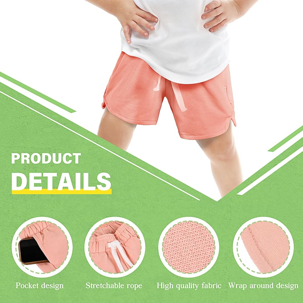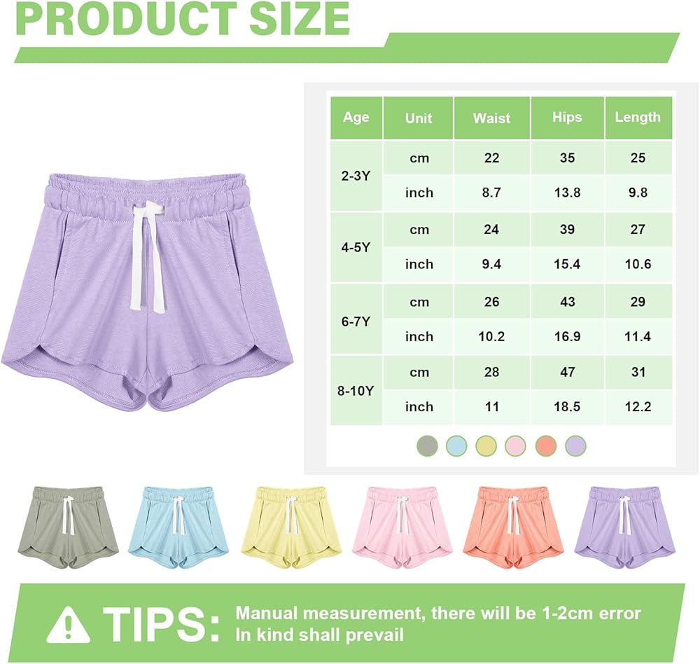 • Comfort Meets Durability: made of 80% cotton and 20% polyester, our girls exercise shorts are soft and breathable, smooth and lightweight, get the balance of durability and comfortable wear, keep girls dry and active while they enjoy workouts on hot summer, especially ideal for outdoor activities, soccer practice, hiking, biking and more