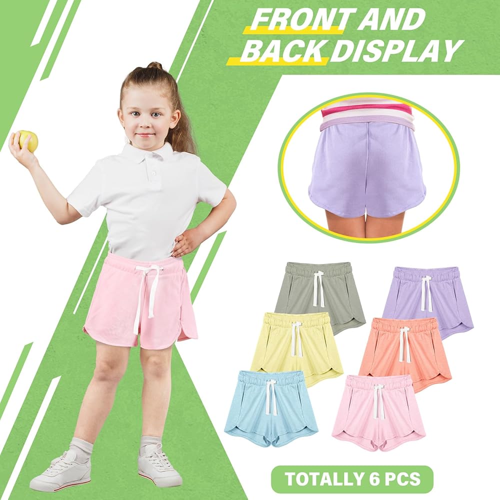 • Multipack Running Shorts for Active Girls: unleash the vibrancy of 6 fresh colors with our collection of girls basketball shorts; Available in various sizes, cater to girls of different ages, this pack of 6 girls running shorts in lively colors not only keeps her wardrobe refreshing, but also adds a fun twist to girls workout clothes