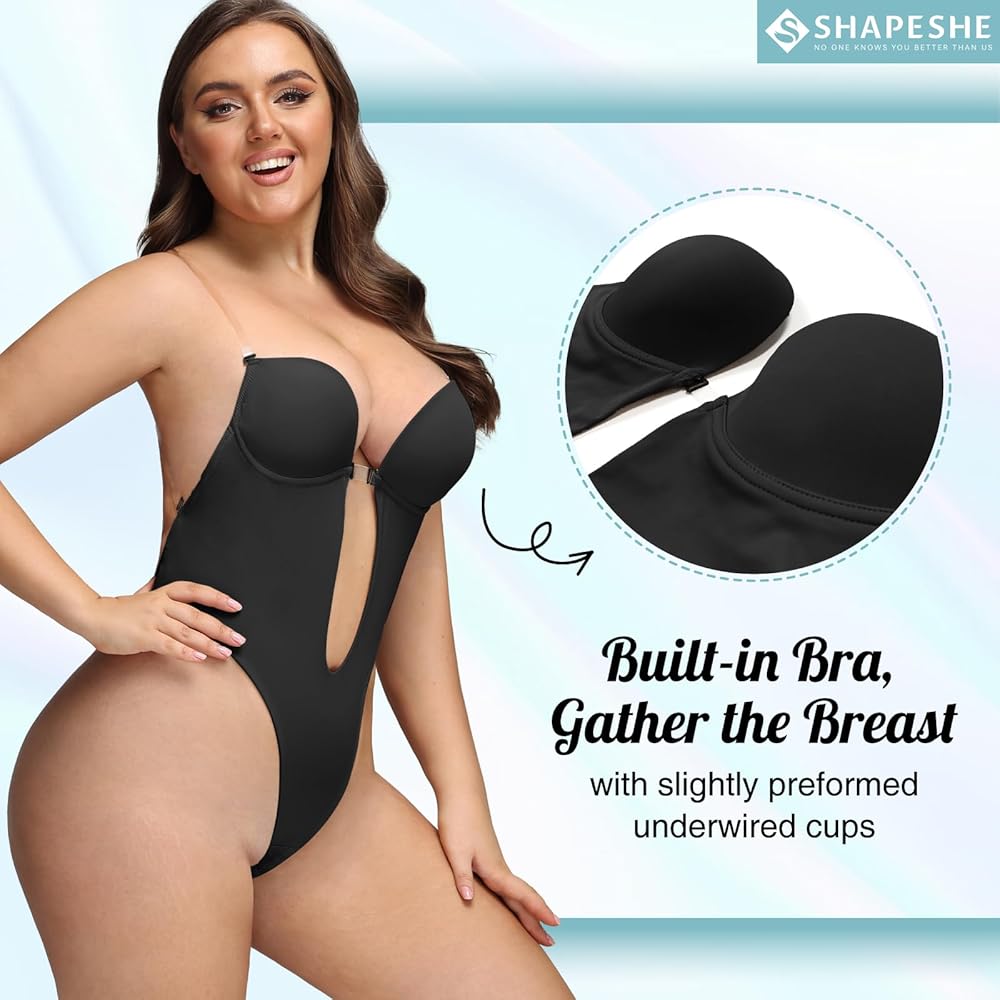 【حلقة فولاذية ناعمة لدعم الصدر】 تتميز ملابس الجسم ذات الظهر المنخفض بدون حمالات بحلقة فولاذية ناعمة لدعم الصدر، وتأكد من راحة ثدييك. يوجد 4 أبازيم قابلة للتعديل على جانب الخصر، والأشرطة الشفافة لديها أكثر من 3 طرق لارتدائها!