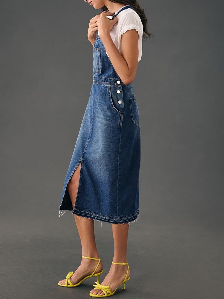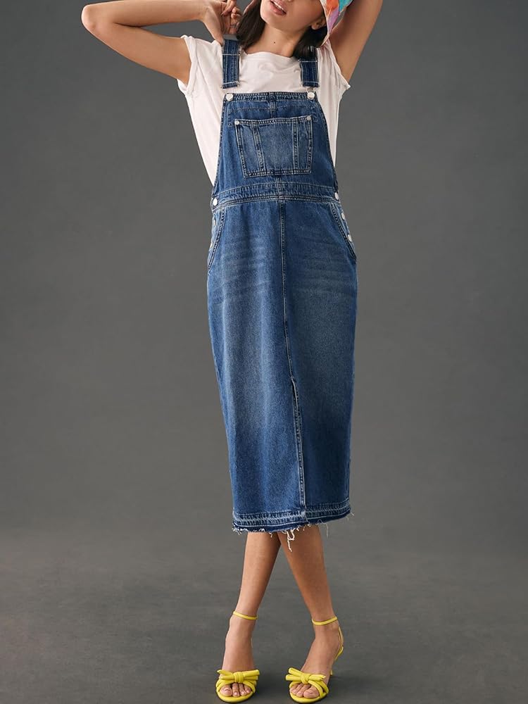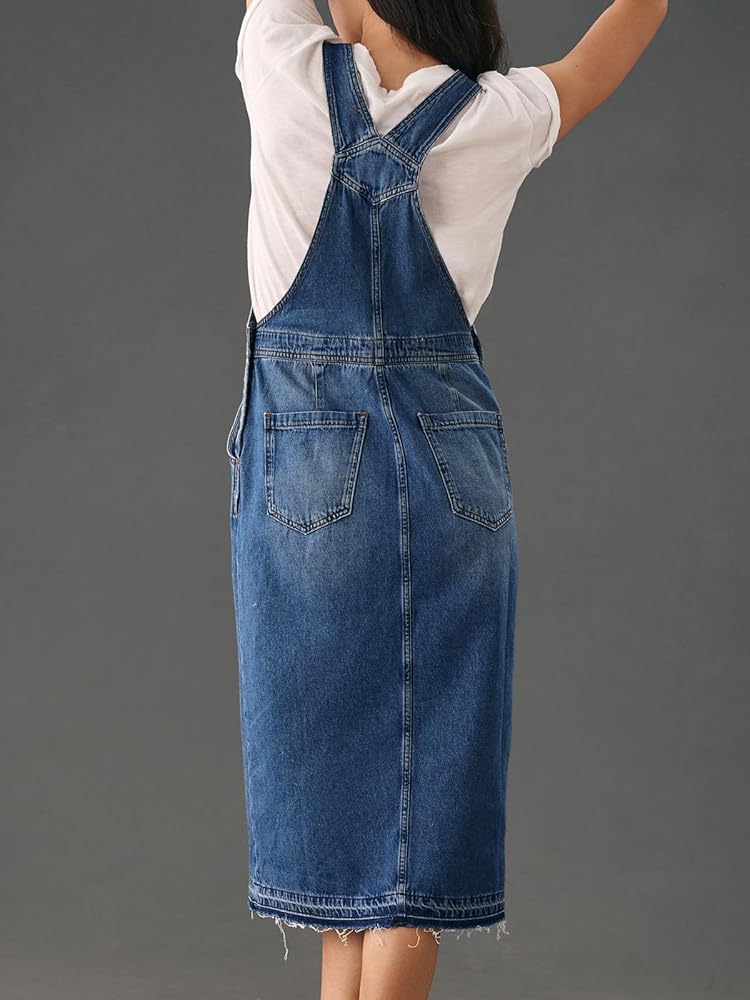 المطابقة: يوفر فستان الدنيم الشامل للنساء إمكانيات لا حصر لها للأناقة. يمكنك ملاءمته مع التي شيرت والسترة والقميص بدون أكمام والبلوزات الأخرى، طراز عتيق ولطيف للجميع، يستحق إضافته إلى خزانة ملابسك.