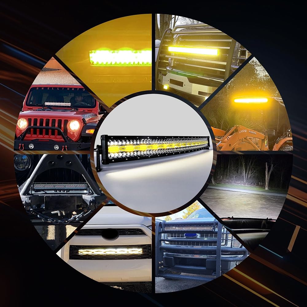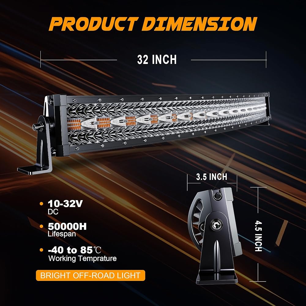 ASLONG 32 بوصة 180 واط شريط إضاءة LED منحني أبيض/كهرماني ستروب مع ستة أوضاع بقعة فيضان كومبو الطرق الوعرة ضوء القيادة، 1 قطعة مفتاح تسخير الأسلاك لشاحنة بيك اب الطرق الوعرة 4WD SUV ATV UTV