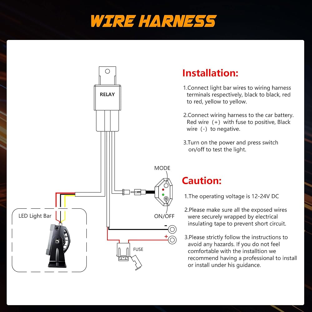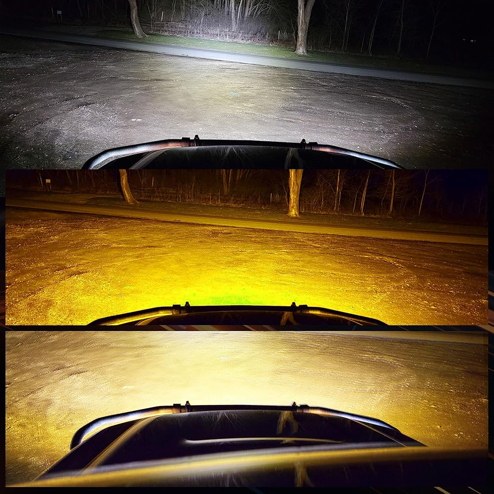 • 6 أوضاع إضاءة - أبيض/كهرماني/أبيض وكهرمان/ستوب أبيض/كهرماني/ستوب أبيض وكهرماني. يمكن تعديل وضع التنظيم عن طريق تبديل الأضواء بدوره. إنه رائع للاستخدام كضوء تحذير أو مصابيح ضباب أو مصابيح قيادة أو مصابيح عمل.